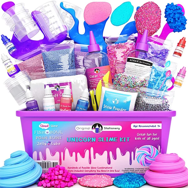 Цей набір — чудова нагода не лише весело провести час, а й поринути у світ хімії! У комплекті є все необхідне для створення власних слаймів: клеї, активатори, барвники, ароматизатори, блискітки, кульки для наповнення. Можна зробити класичні, пінні, флафі, желейні та інші види слаймів. Крім задоволення від гри, набір знайомить дитину з основами хімічних реакцій, розвиває уяву, логіку, акуратність і терплячість. Підходить дітям від 6 років під наглядом дорослих.