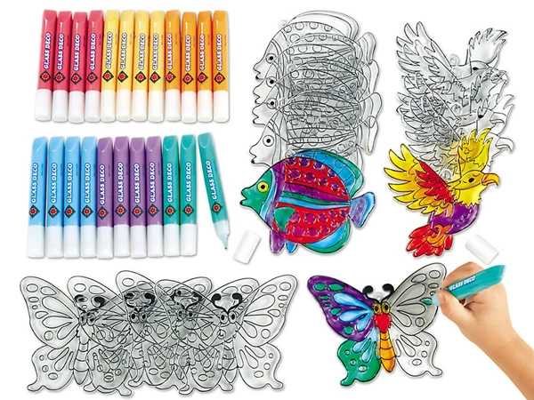 Цей набір стане справжнім відкриттям для дитини, яка любить малювати, фантазувати та створювати яскраві вироби власноруч. У комплект входить 15 прозорих пластикових фігурок у формі тварин, зірок, сердець та інших цікавих форм, які можна розфарбувати спеціальними маркерами або фарбами для вітражу (у набір не входять). Вітражні фігурки чудово прикрасять вікна дитячої кімнати або стануть милими подарунками для близьких. Така творчість розвиває дрібну моторику, колірне сприйняття, акуратність та художнє мислення.