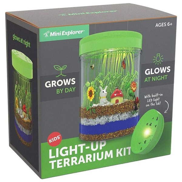 Цей набір поєднує у собі природничі науки, інженерію та креатив. Дитина зможе власноруч створити мініатюрний світ у банці — з піском, землею, декоративними рослинами та LED-підсвіткою. У комплект входить все необхідне для створення яскравого міні-терраріуму, який світиться в темряві. Така гра не лише захоплює, але й вчить доглядати за рослинами, формує екологічне мислення, знайомить з базовими біологічними поняттями та стимулює дослідницький інтерес.