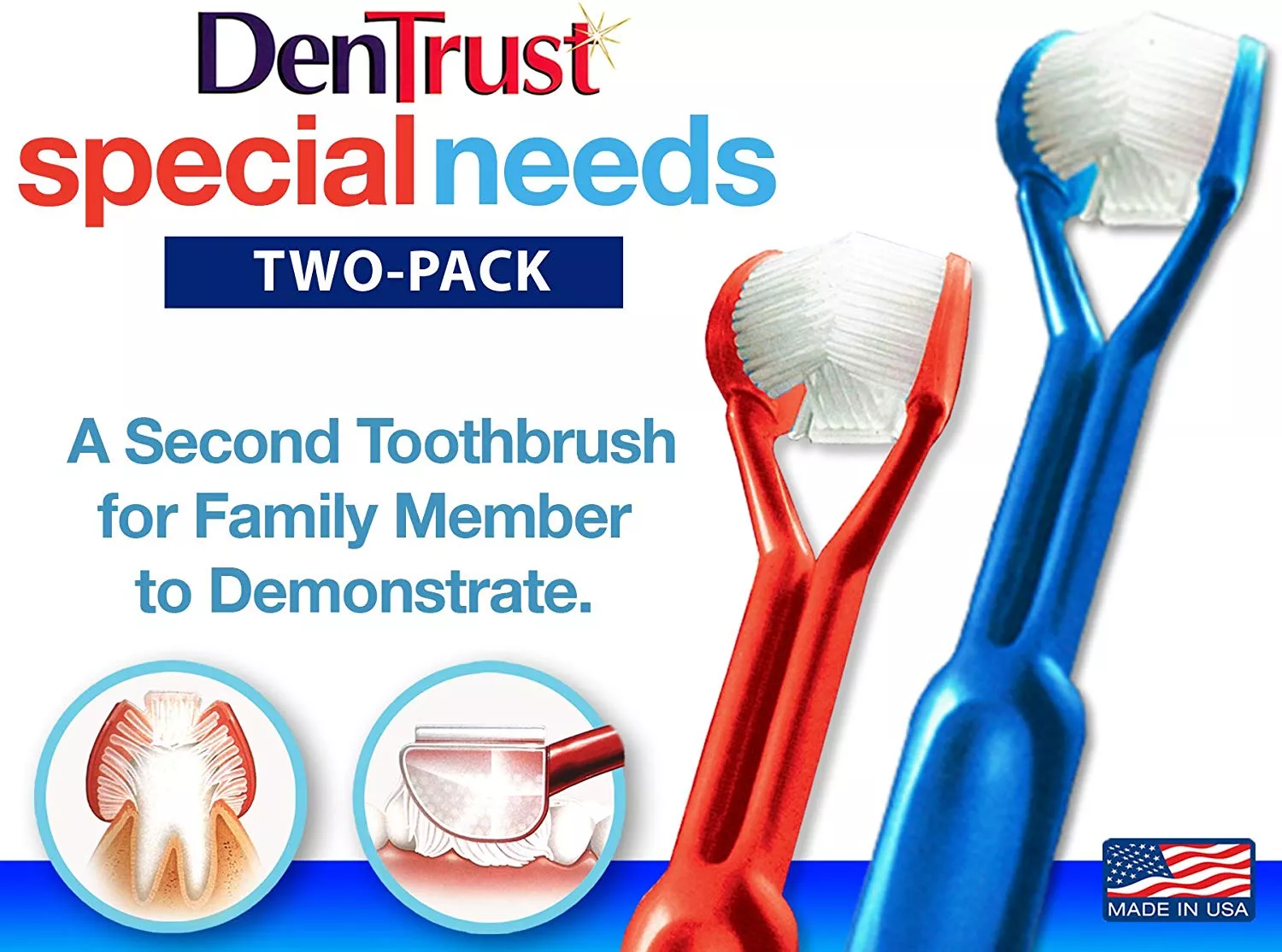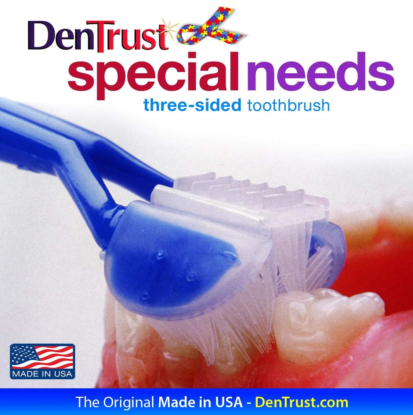 Тристороння зубна щітка DenTrust допоможе навчити дитину правильно чистити зуби. Ефективна для людей з чутливими зубами. Чистить відразу всі три сторони зубів. Чистить швидко, легко і ефективно. Підходить для дорослих і дітей!