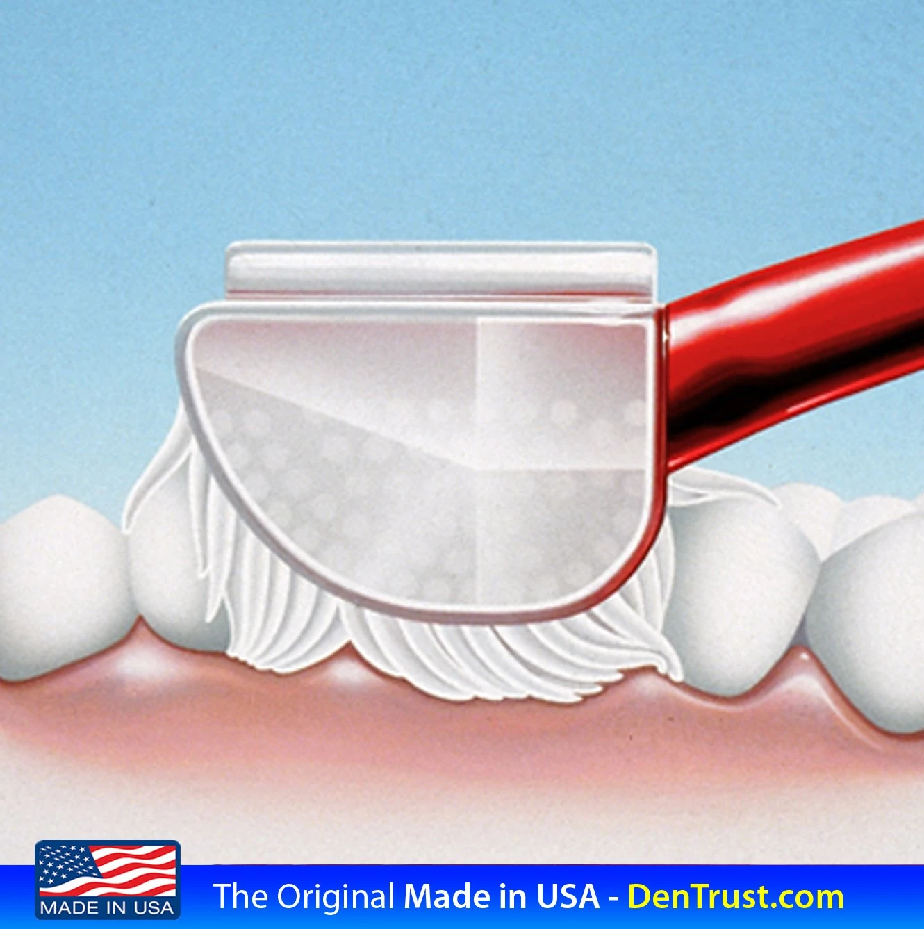 "Одягніть" зубну щітку DenTrust на зуби і потім чистите їх короткими рухами назад і вперед.