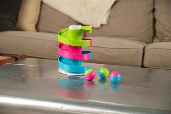 Трек-балансир для кульок - це дуже цікава іграшка, яка подобається абсолютно всім. Він складається з трьох частин різного кольору, їх необхідно з'єднати в одне ціле в будь-якій послідовності і можна починати спускати кульки. Основна особливість іграшки полягає в тому, що коли кульки скочуються, вони розгойдують конструкцію по своєї осі. Текстурована поверхня трека змушує кульки стукати при спуску. Це дуже цікава іграшка як для хлопчика, так і для дівчинки.