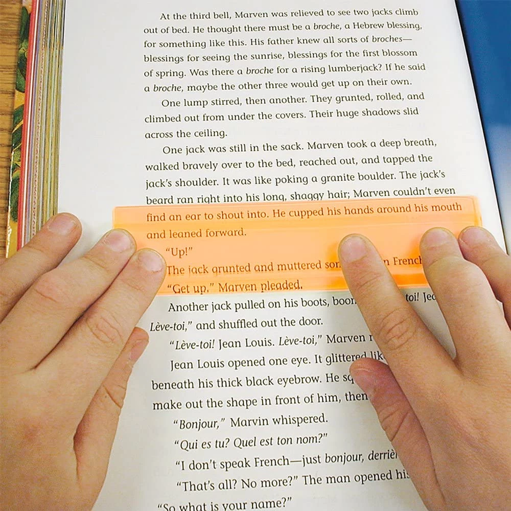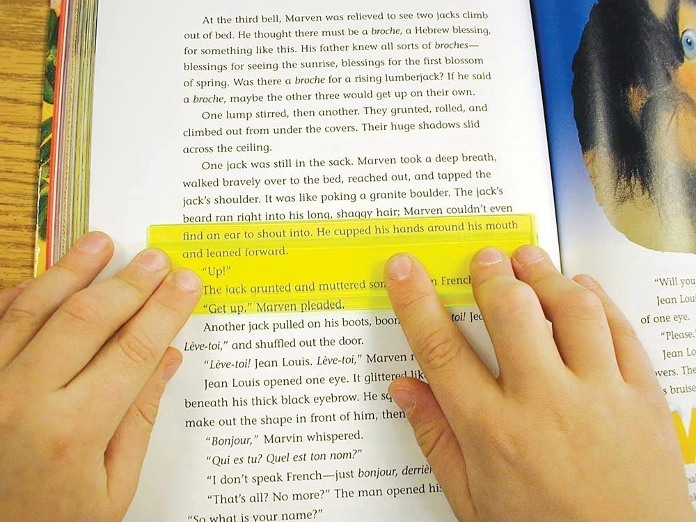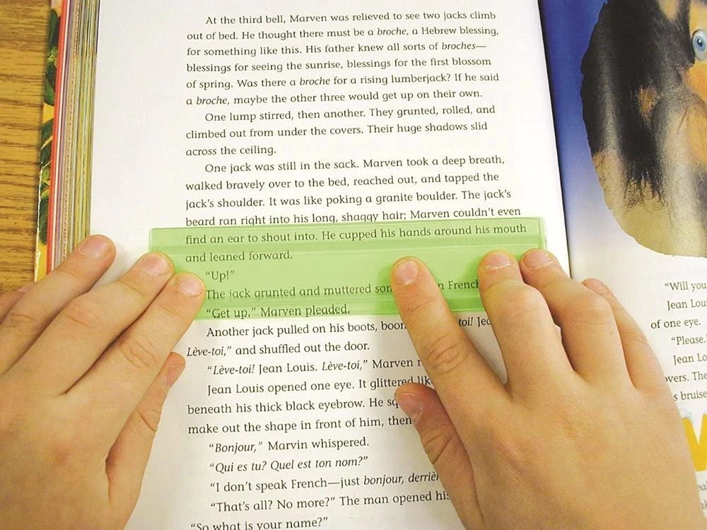 Це ідеальний інструмент, що допомагає дітям, які вчаться читати, легко відстежувати текст. Смужка дозволяє стежити за текстом поглядом. Кольорова смужка використовується в класах і вдома, для полегшення труднощів з читанням, пов'язаних з порушенням навчання, включаючи дислексію. Смужка знімає зоровий стрес і зменшує показники, зазвичай пов'язані з дислексією, такі як низька швидкість читання, точність і розуміння.