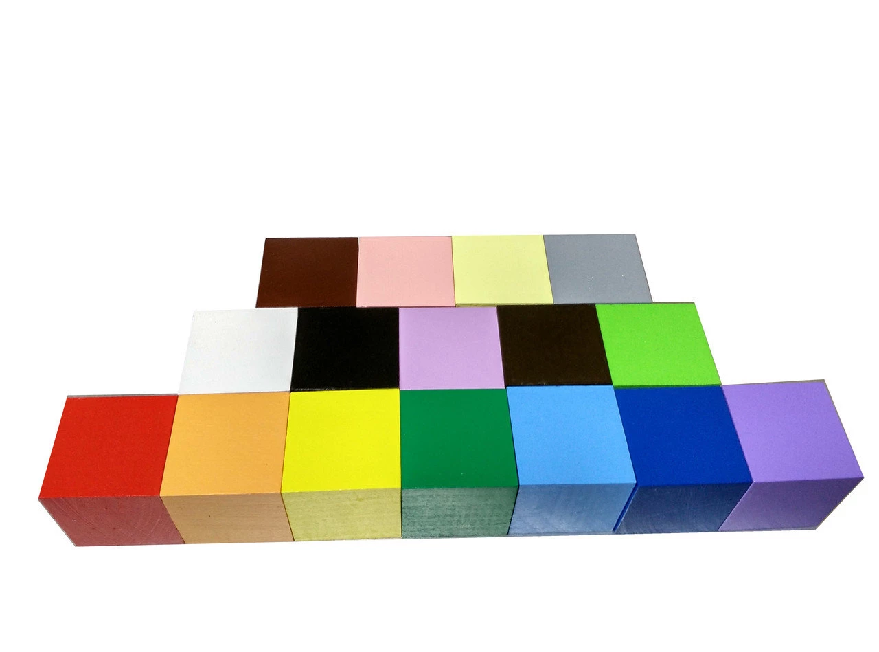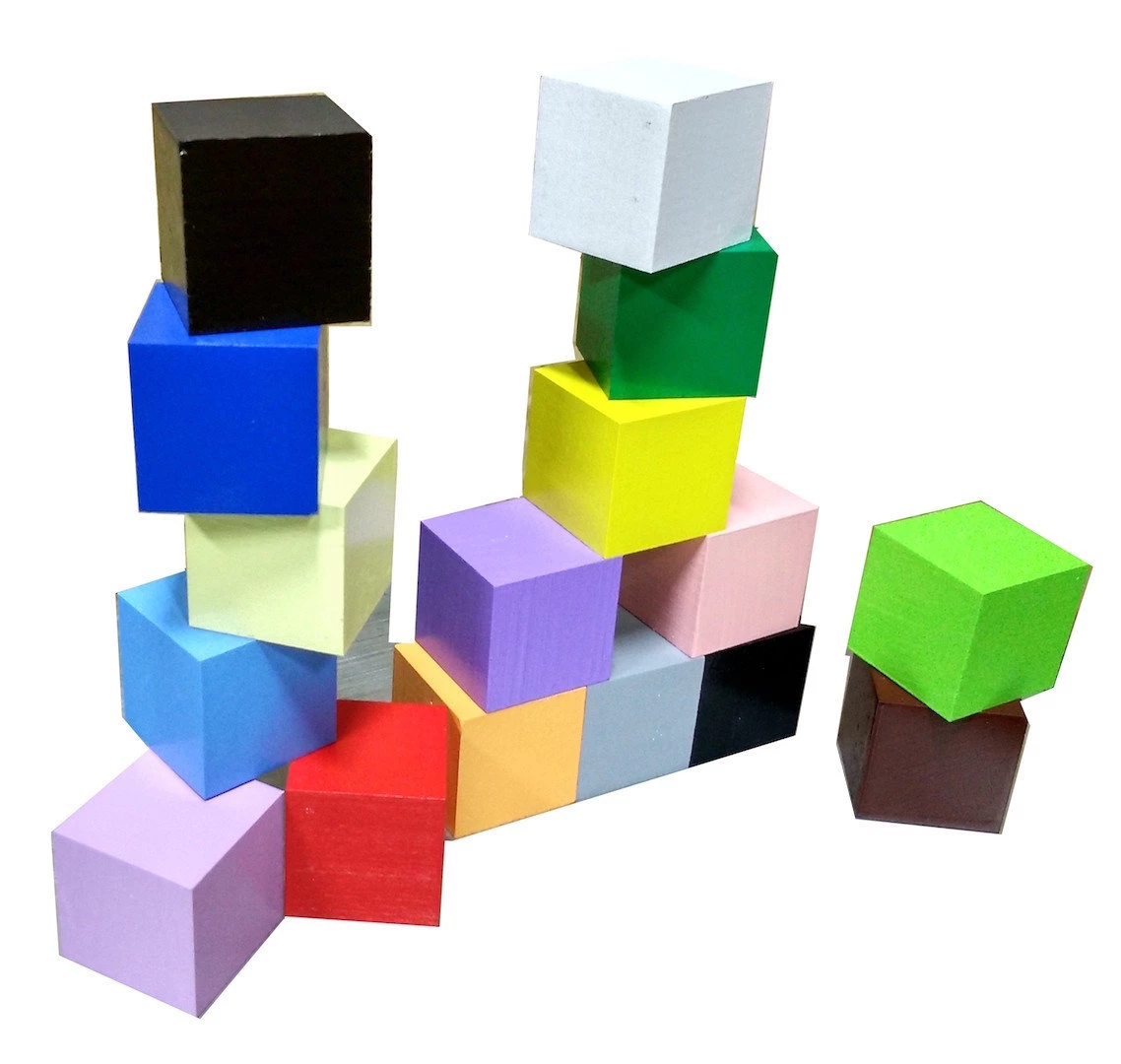 Кольорові кубики 16 шт. (Кольорові кубики) кубик 4х4см, Методика Монтессорі дерев'яні кубики
