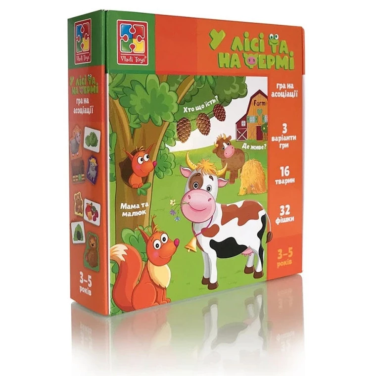 Грай та вивчай диких та домашніх тварин. У цьому тобі допоможе настільна гра на асоціації «У лісі та на фермі».