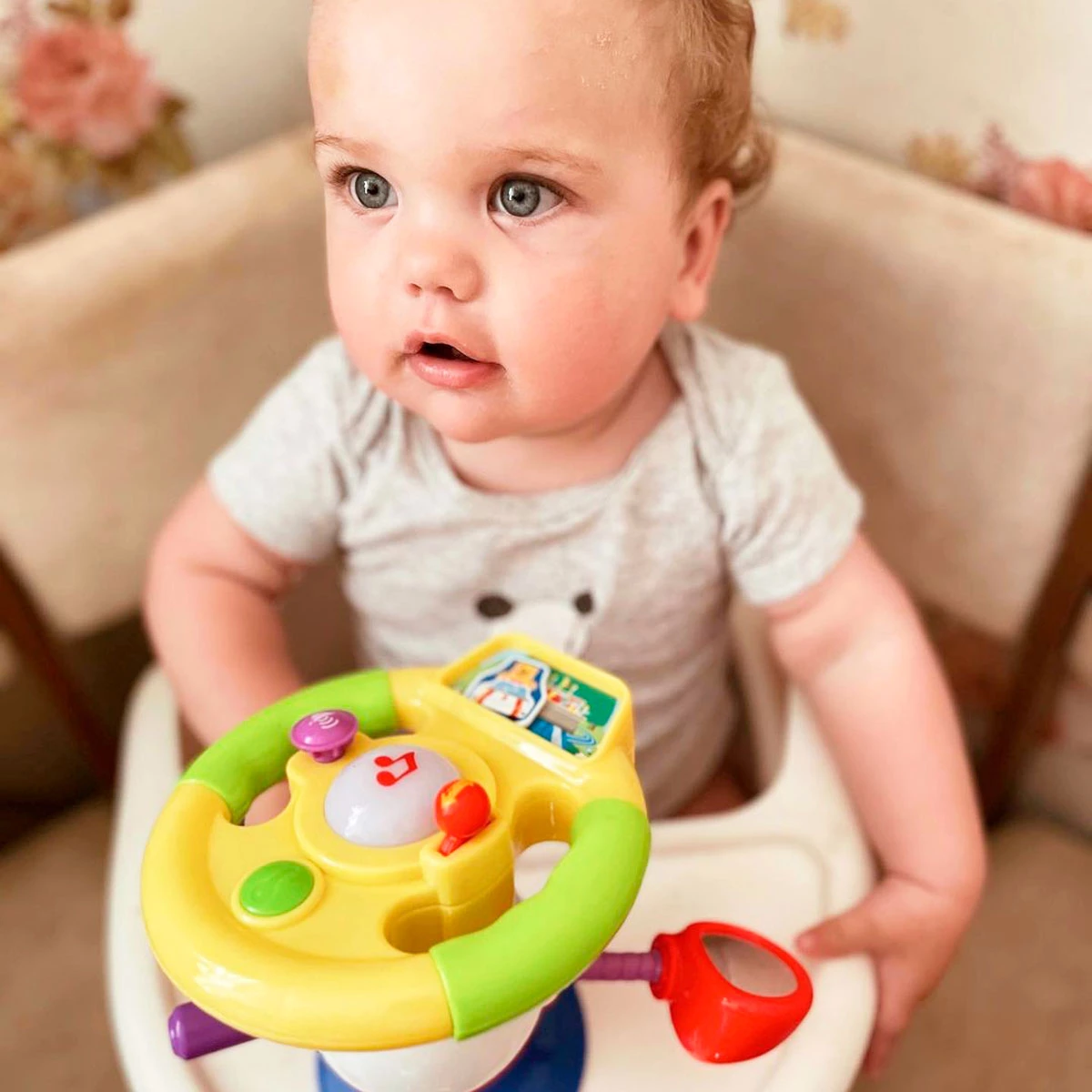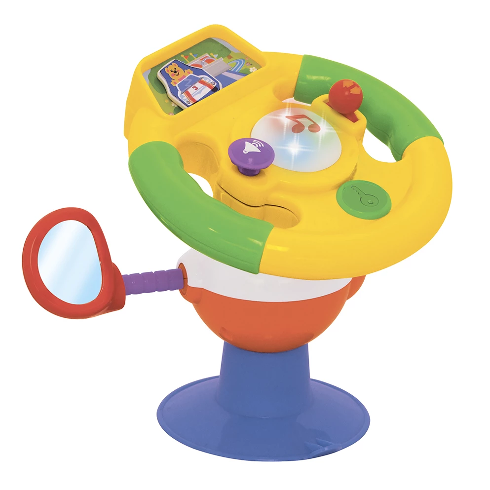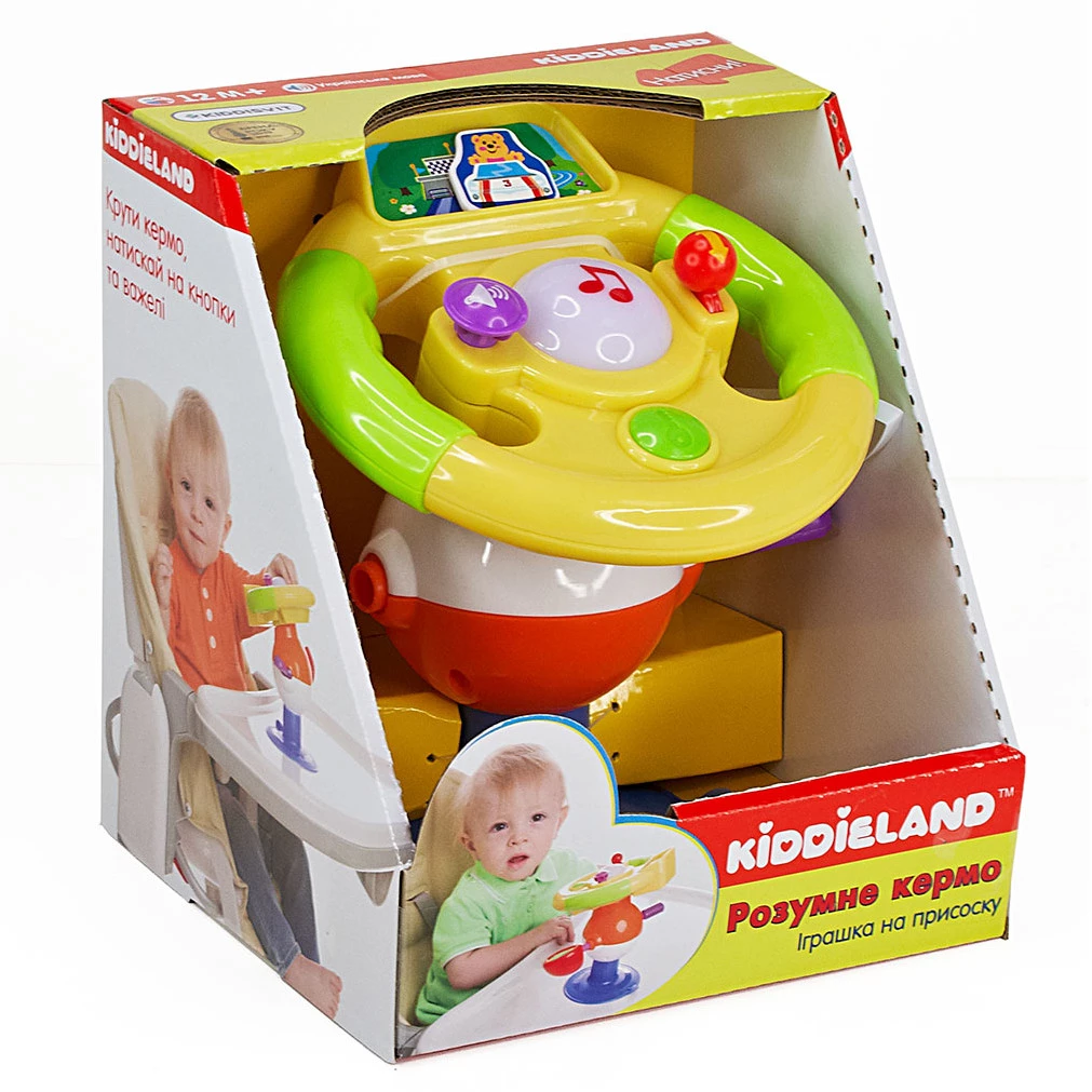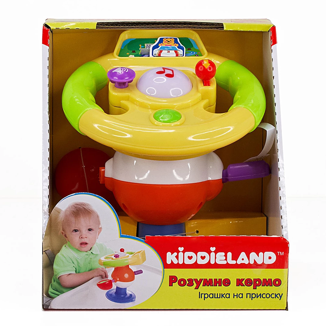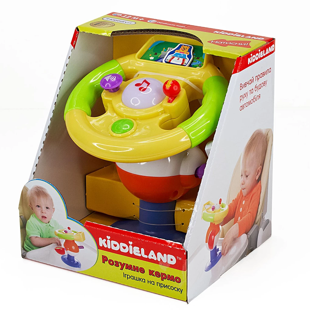 Музична іграшка «Розумне кермо» буде чудовим подарунком для маленьких водіїв. Іграшка на присосці, виконана у вигляді керма, порадує малюка своїми функціональними можливостями. Вона видає звуки, а також оснащена різнокольоровими лампочками, які відповідають за світлові ефекти. Поверніть ключ запалювання, і ви почуєте звук двигуна та поворотників. Дорогою маленького автомобіліста розважатимуть пісеньки та віршики українською мовою. Іграшка знайомить малюка з кольорами світлофора, навчає правил поведінки на дорозі, розповідає про влаштування автомобіля. Є безпечне дзеркало. Іграшку можна кріпити до будь-яких рівних поверхонь за допомогою присоски.