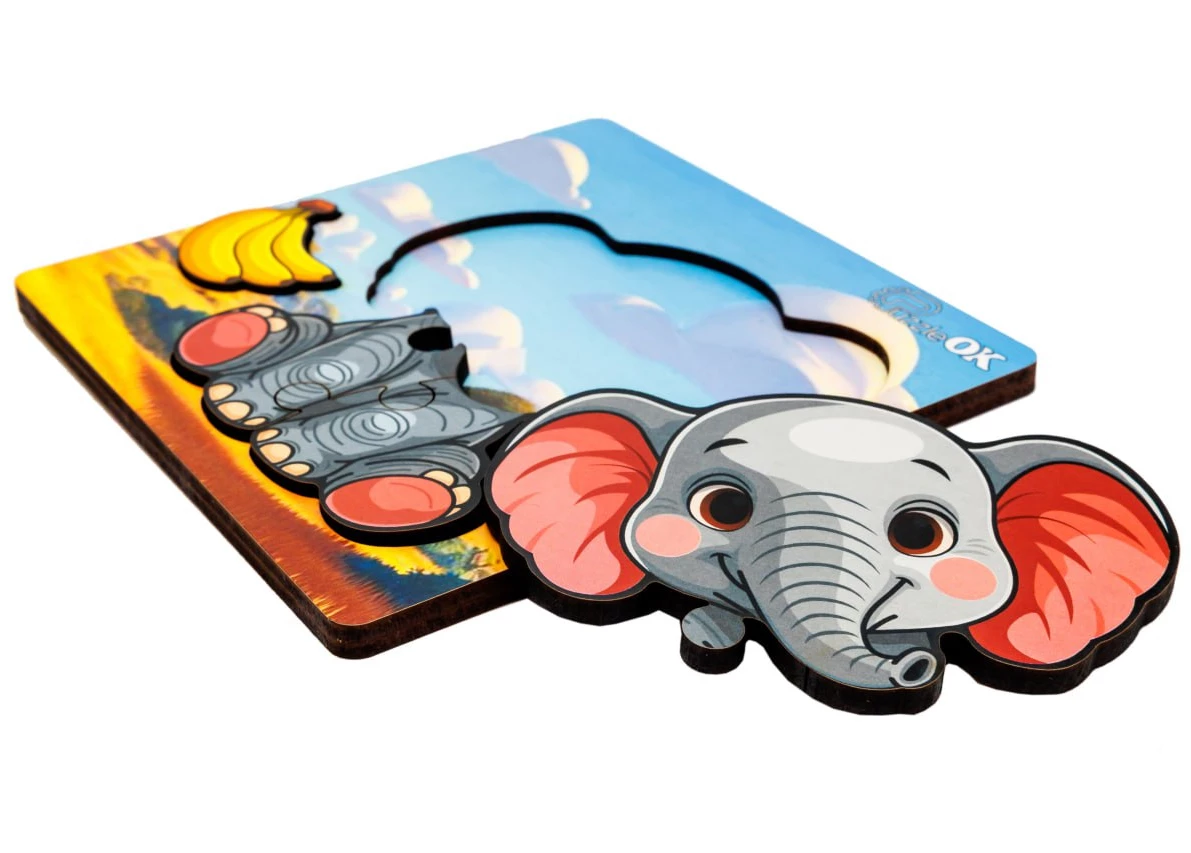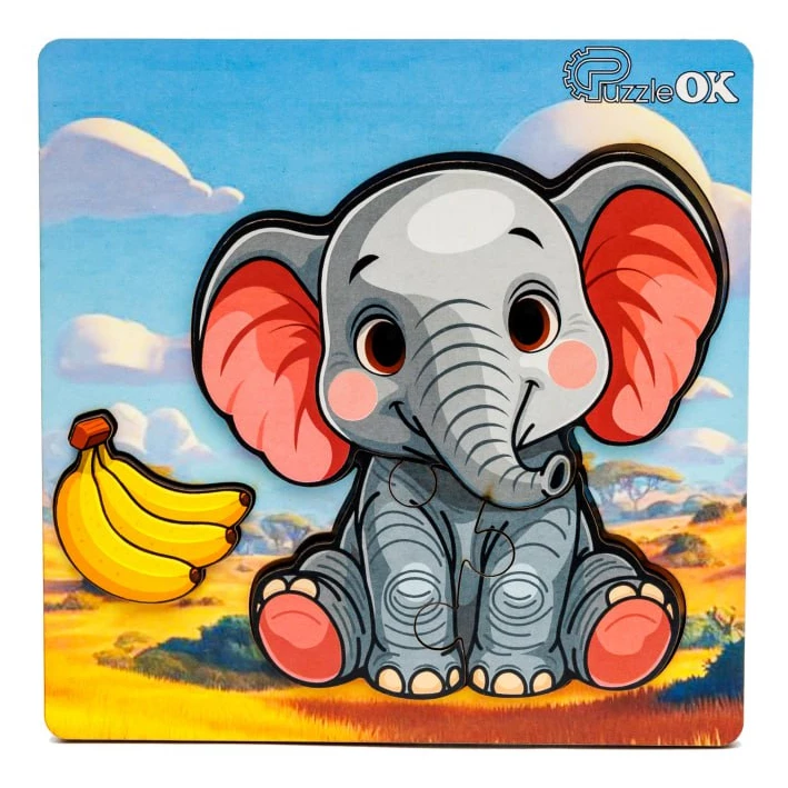 Подаруйте малюкові зустріч із добрим другом! Цей чарівний дерев'яний пазл з веселим слоненятком створений, аби дарувати посмішки та найтепліші емоції вашому малюку. Великі, ідеально гладкі деталі так приємно тримати в маленьких ручках, перетворюючи перше знайомство з головоломками на захопливу гру. Подивіться в ці добрі очі і на рожеві щічки — такий милий герой миттєво стане улюбленим учасником дитячих забав.