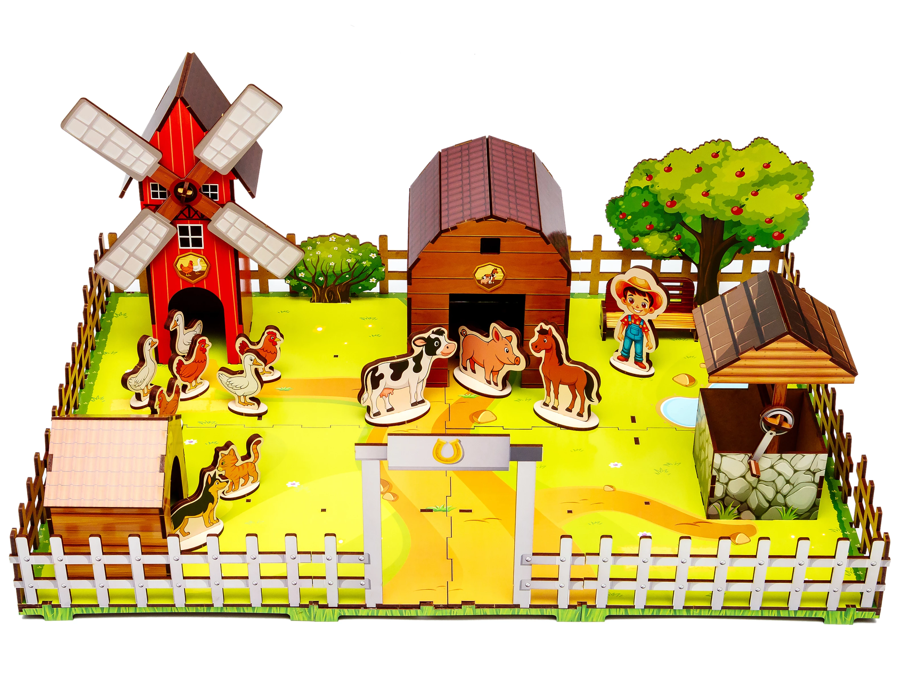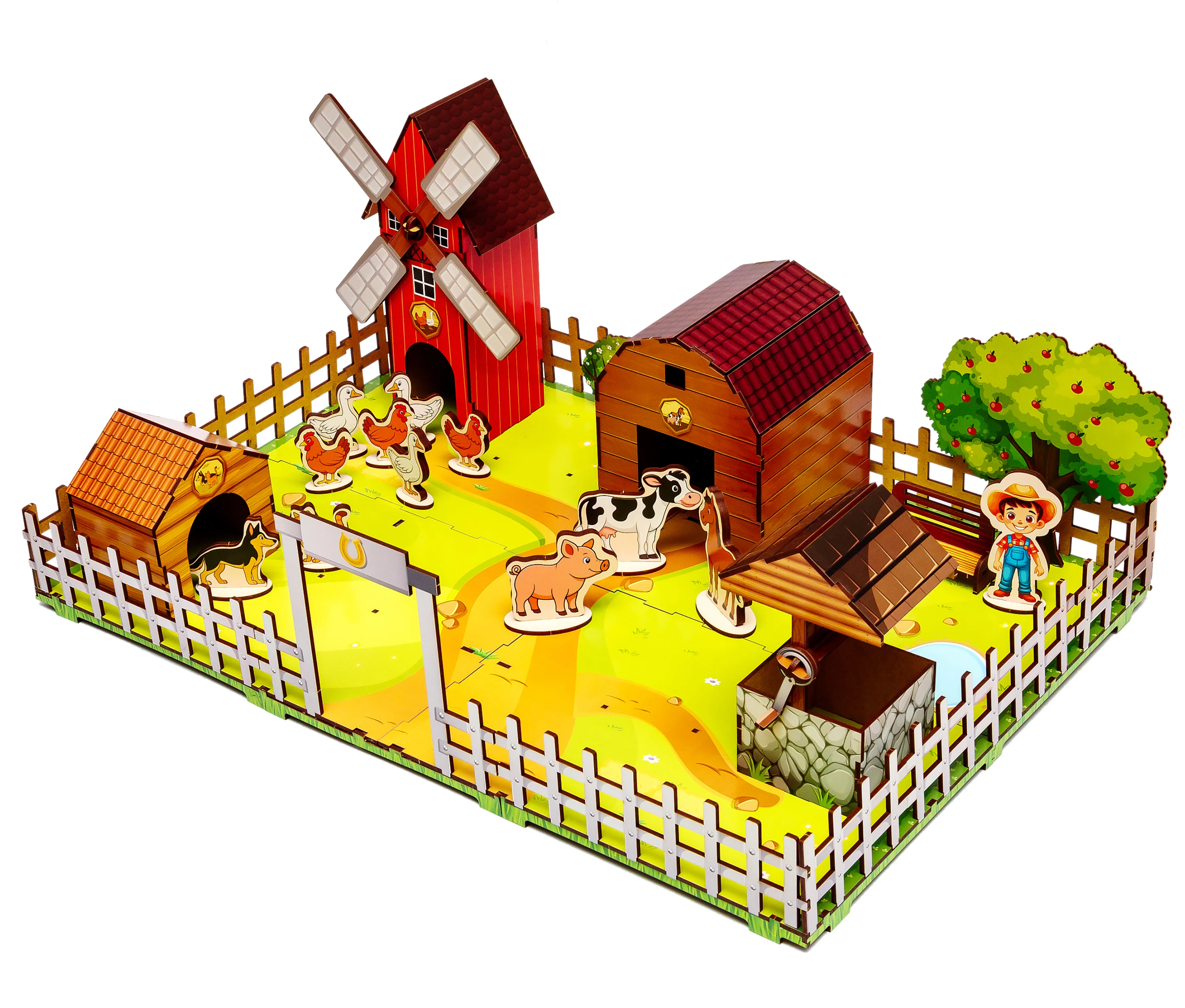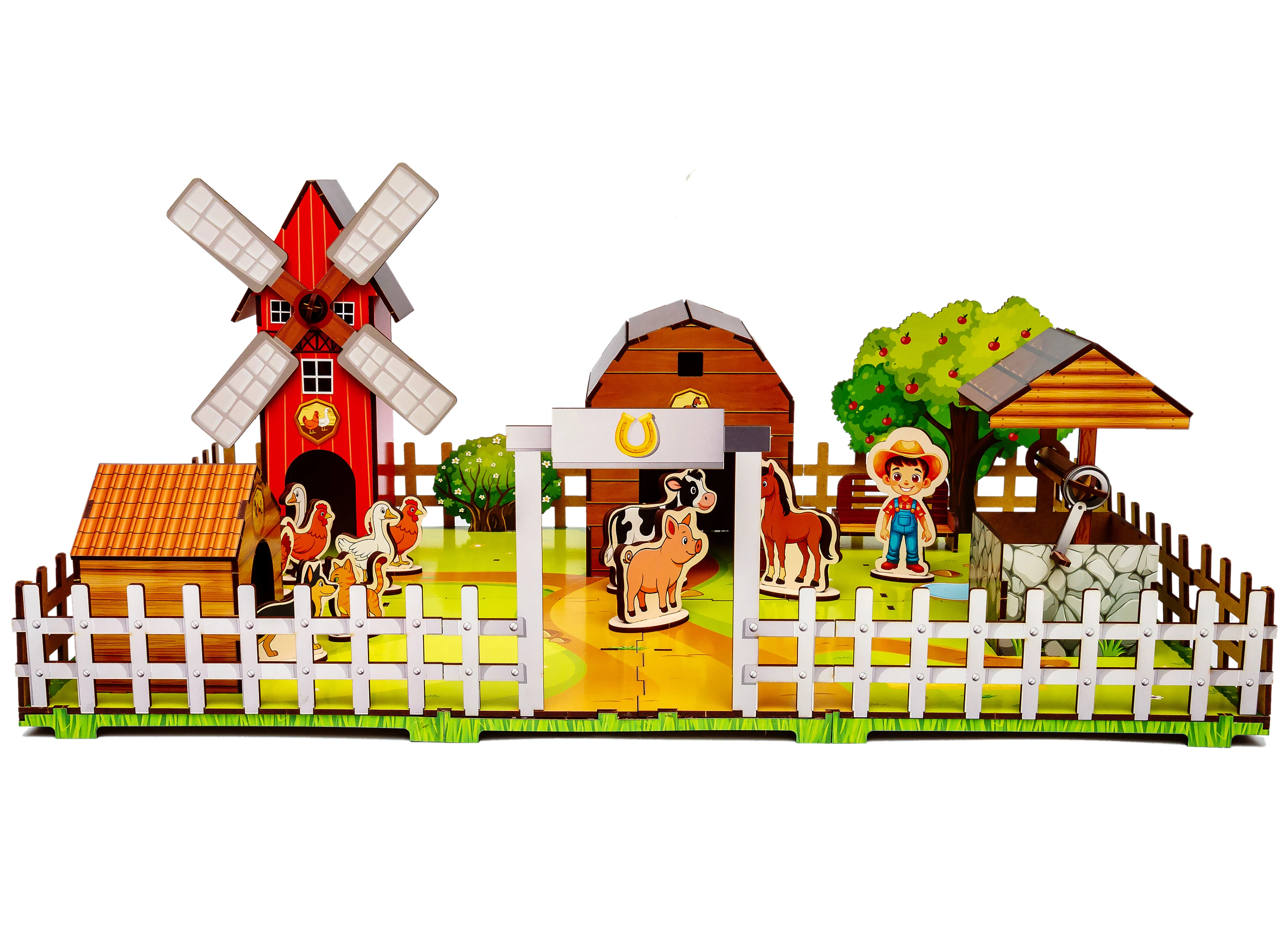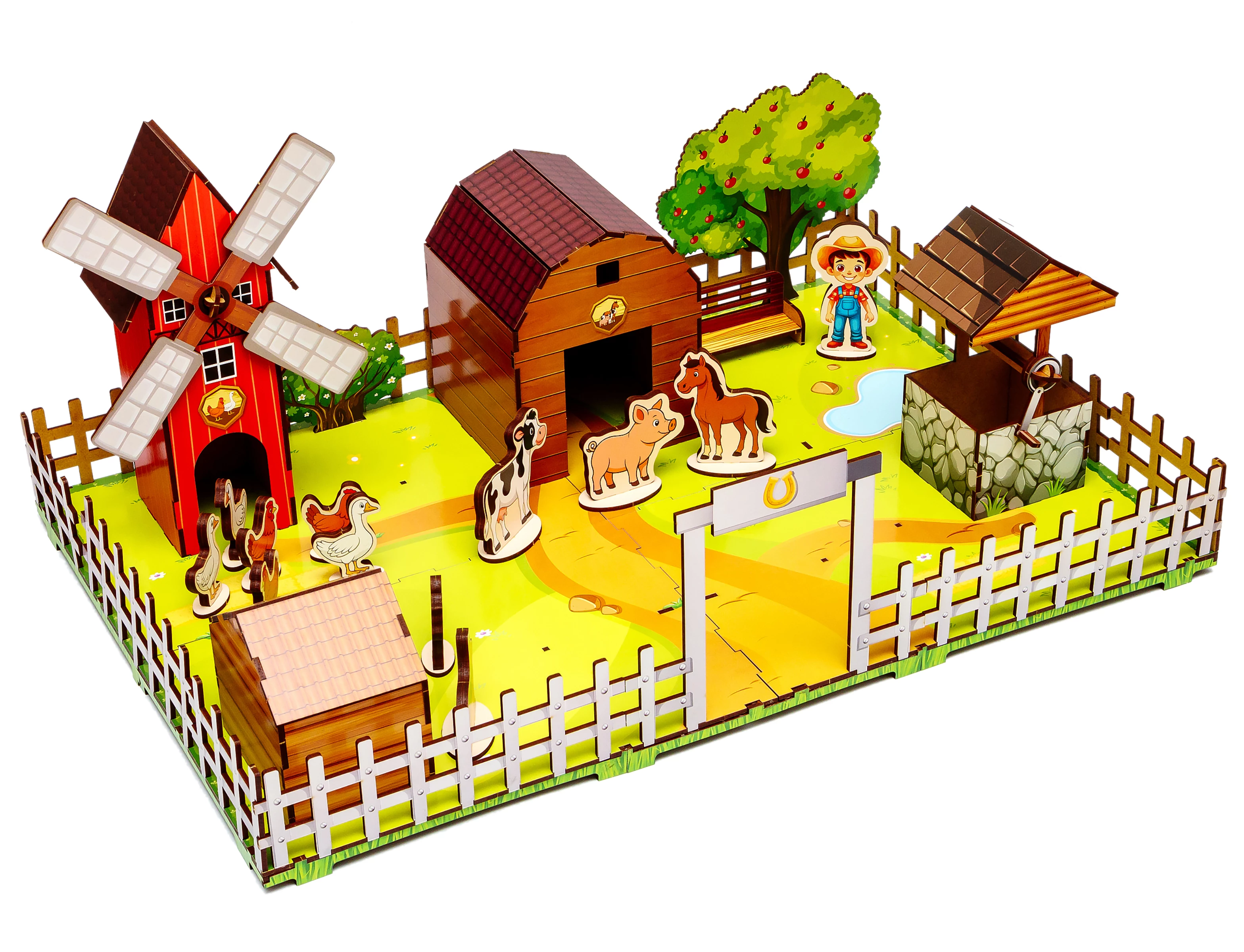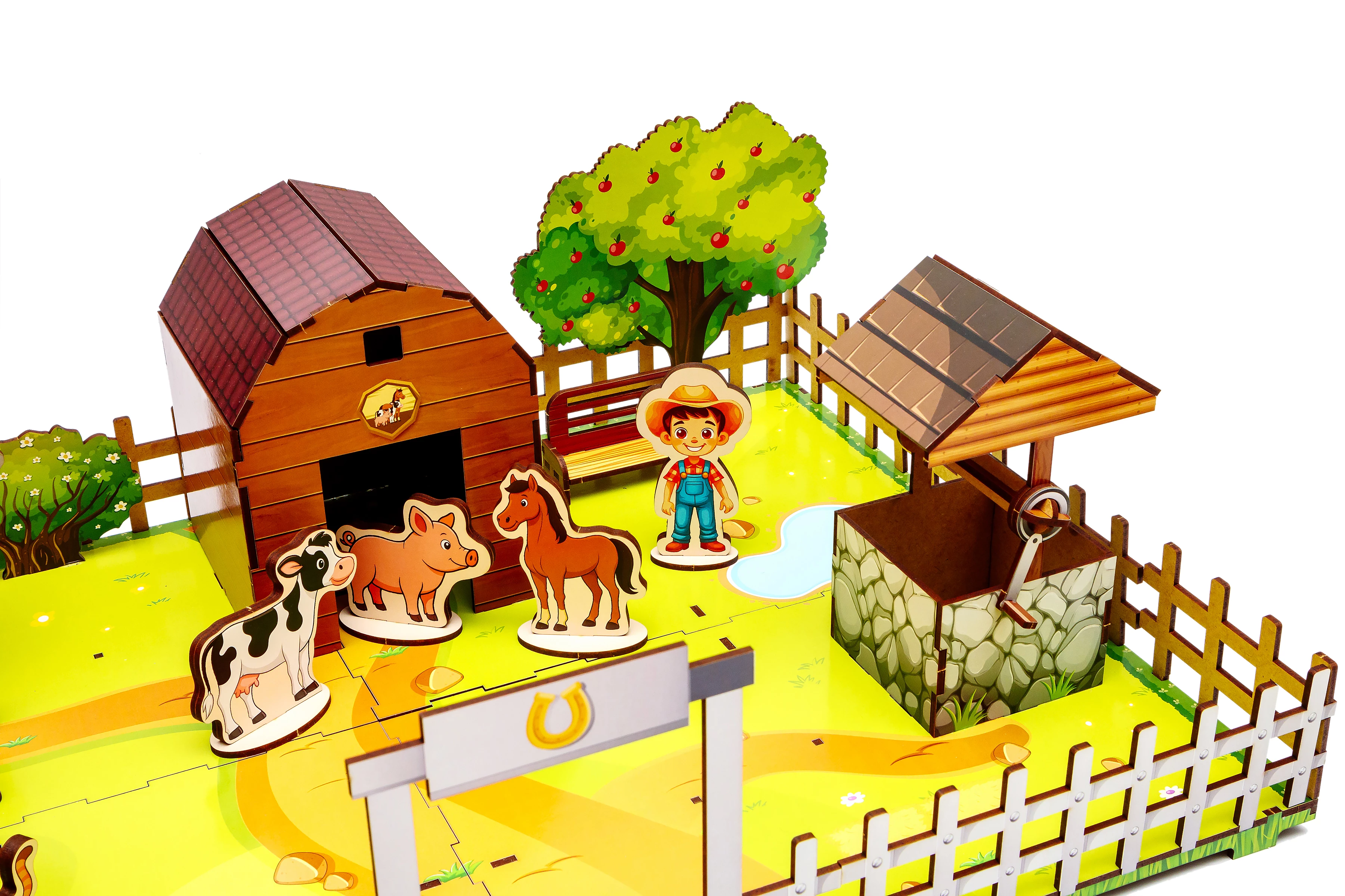 Готова ферма стане улюбленим місцем для ігор, де конячки ходять на водопій до колодязя, а під яблунею народжуються найкращі історії. Подаруйте малюкові радість творчості та частинку заміського затишку, яка прикрасить дитячу кімнату та наповнить її теплом.