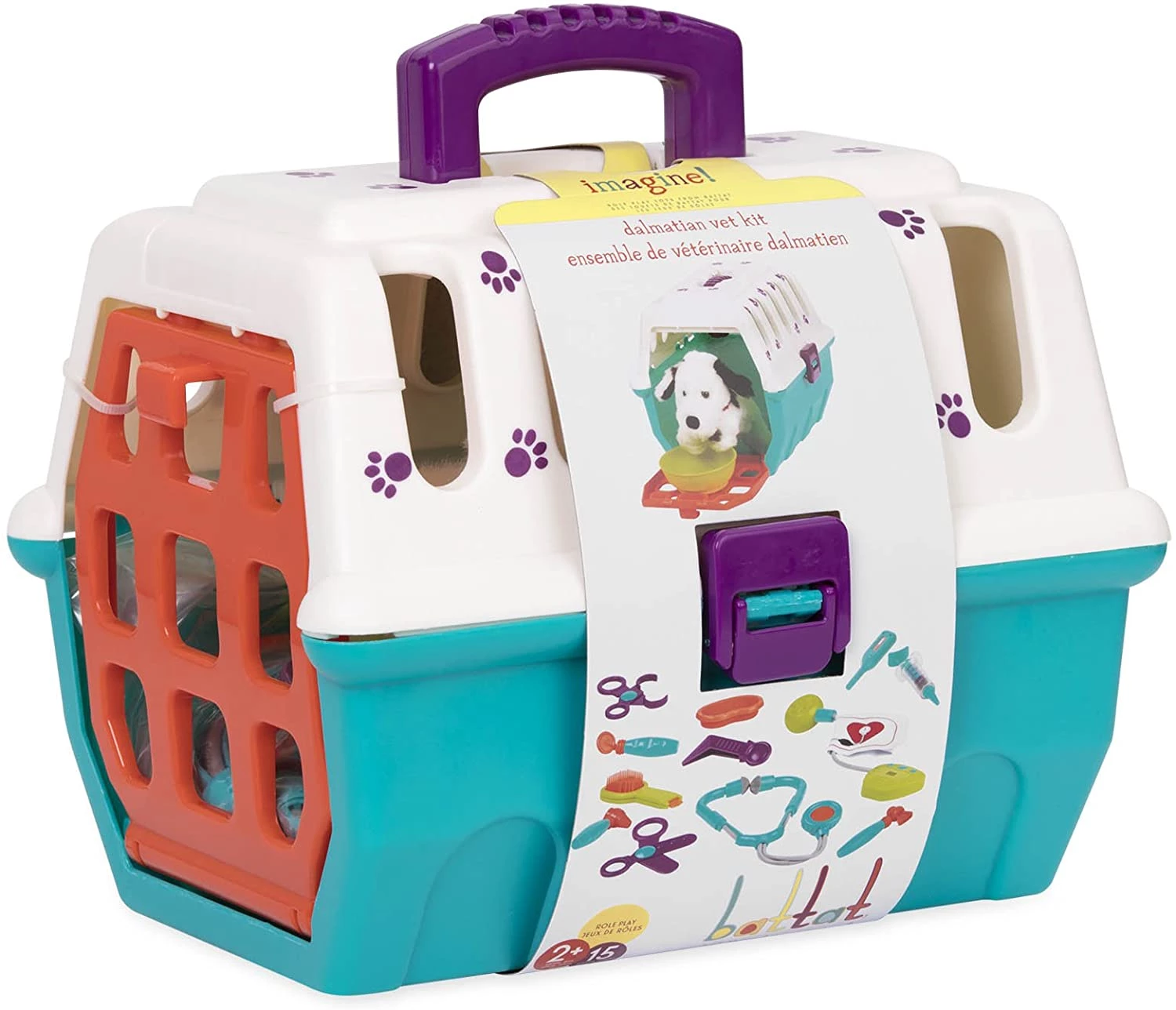 У цьому наборі є все необхідне, щоб подбати про тварину! Цей набір з 15 предметів включає переноску для домашніх тварин, симпатичного милого далматинця і 13 інших інструментів! Все легко поміщається в ящик. Міцний ящик для перенесення ідеально підходить для зберігання вашого цуценя під час подорожі.