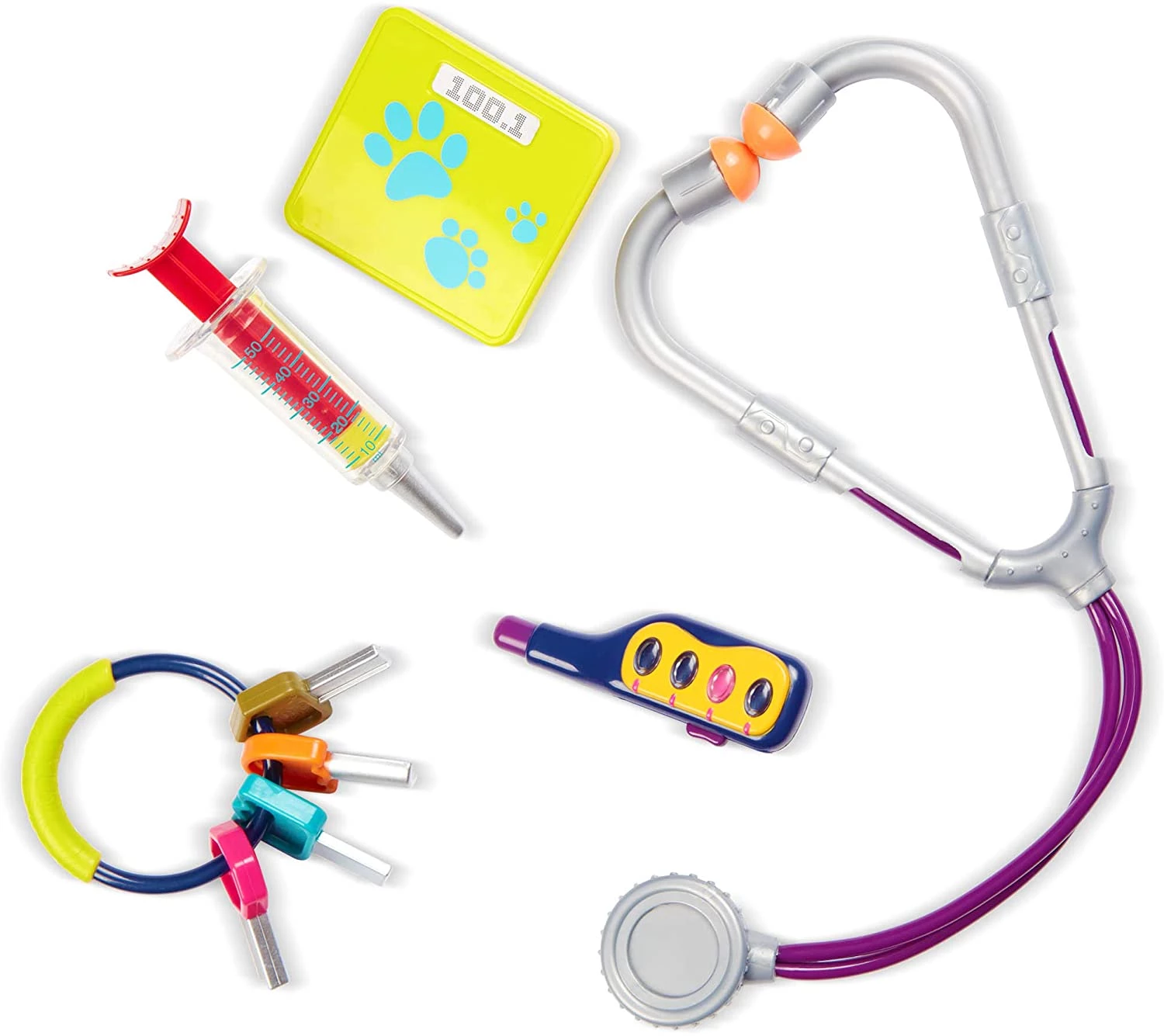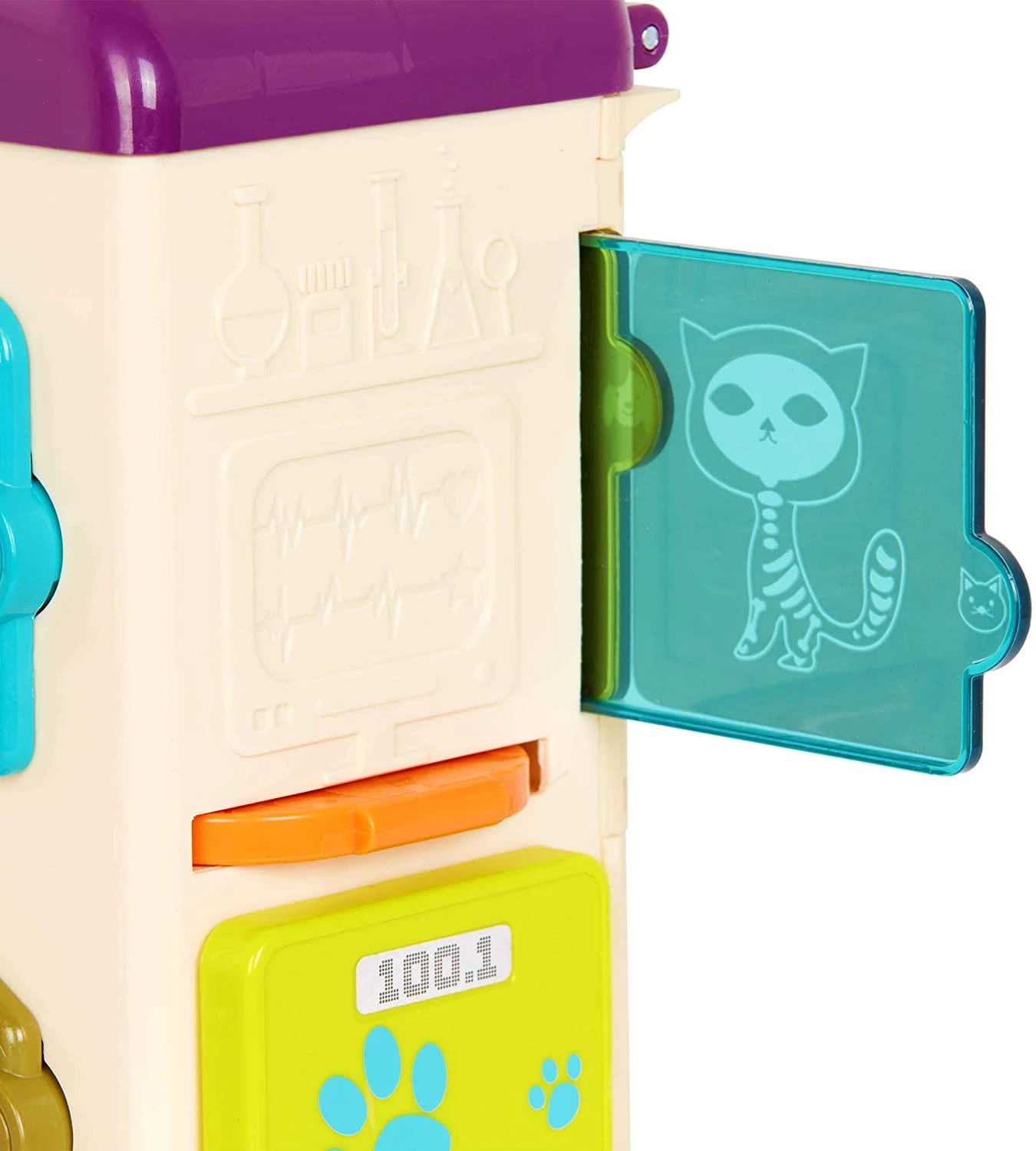Іграшка розвиває дрібну моторику, кругозір і уяву. Дитина зможе пограти в лікаря ветеринара, і вилікувати тварин, використовуючи градусник, рентген і стетоскоп.