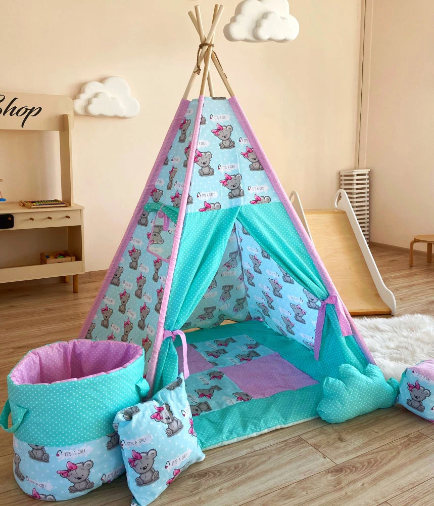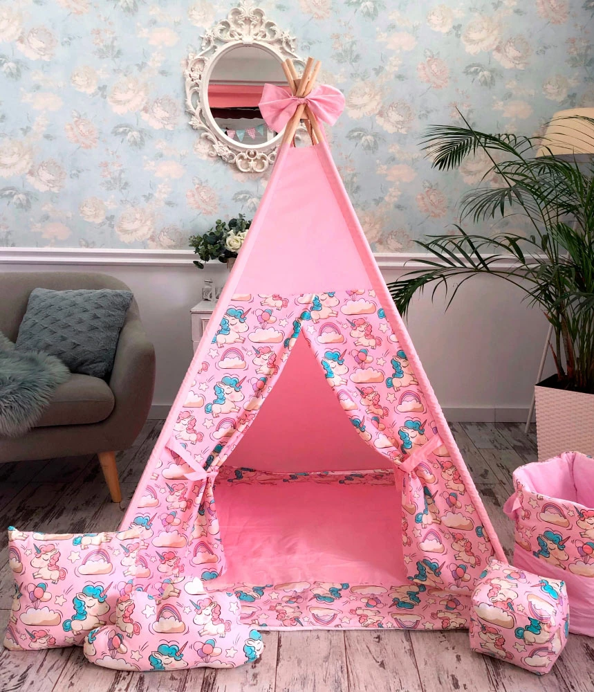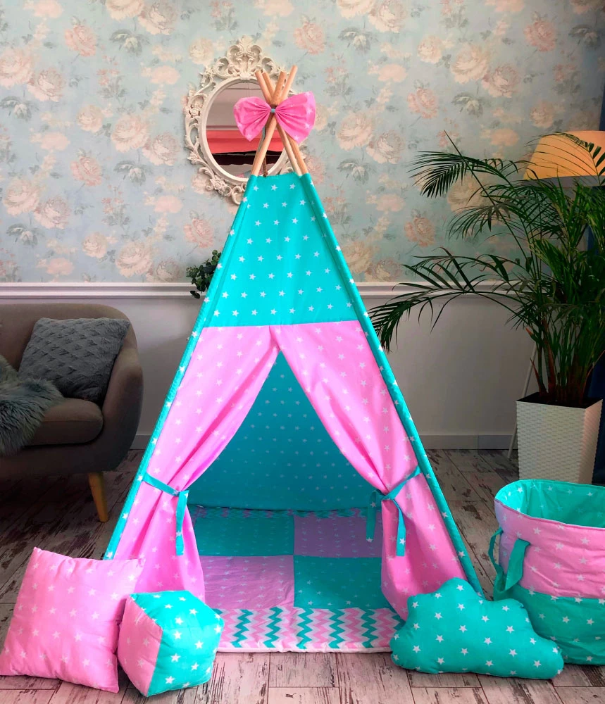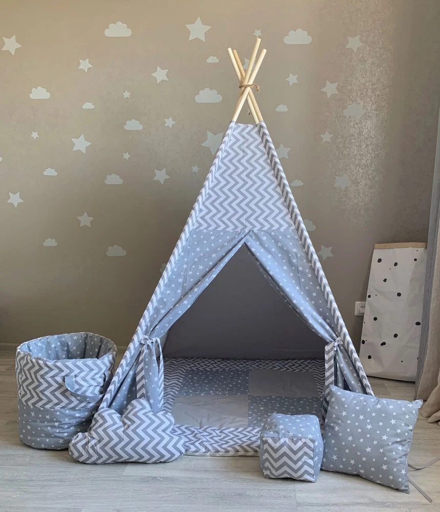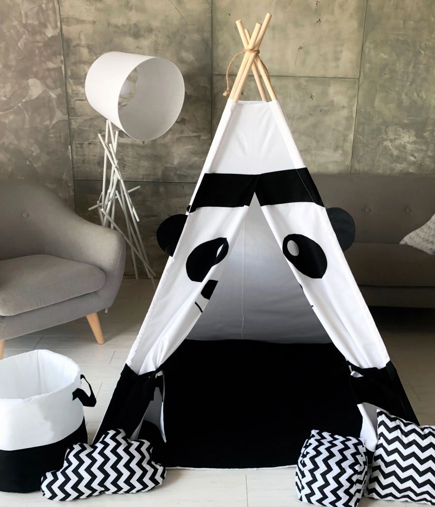 Гарний вігвам стане прекрасним подарунком на будь-яке свято для дитини. Виріб виконаний з натуральних тканин, тому абсолютно безпечно і гіпоалергенні. Усередині вігвама знаходиться пряме ковдрочку, яке не дає малюку замерзнути на підлозі. Діти обожнюють халабуди і будиночки, тому такий варіант однозначно сподобається і стане в нагоді. Багато хто любить не тільки грати в ньому, а й відпочивати. Намет невисока і не займає багато місця в дитячій кімнаті, за допомогою інструкції її дуже легко зібрати.