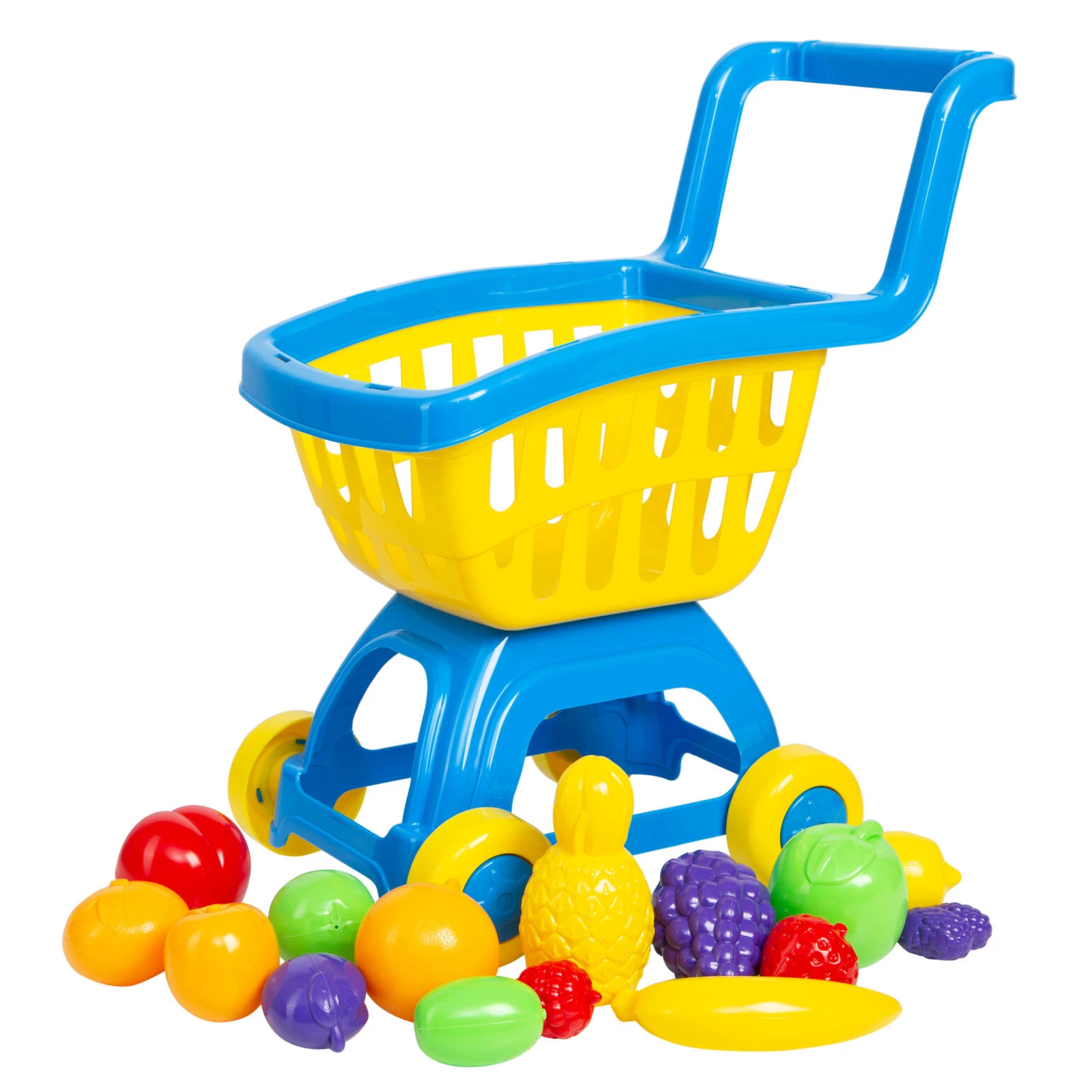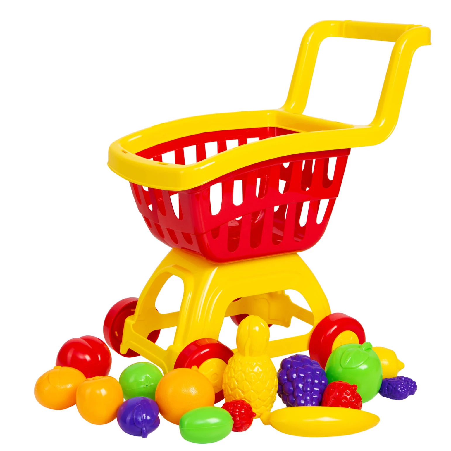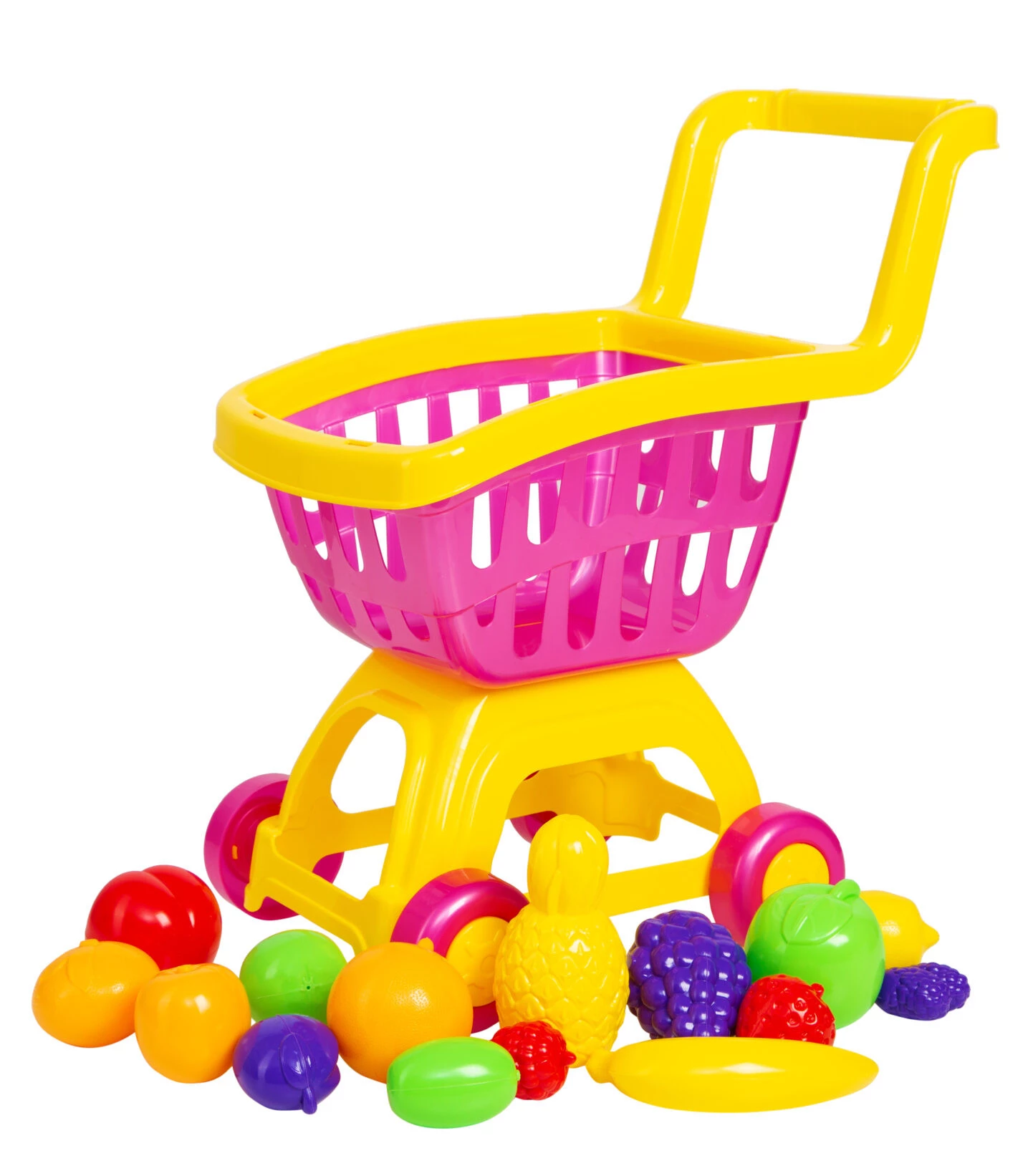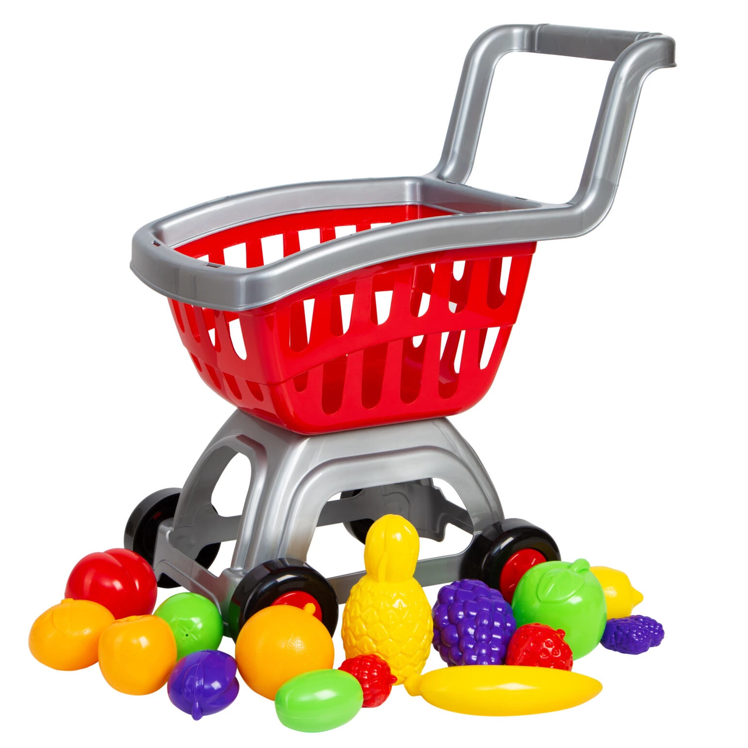 Цей іграшковий візок припаде до душі хлопчикам і дівчаткам віком від 3 років. Дана іграшка є реалістичною копією «дорослого» візка з супермаркету, яким користуються батьки. Іграшка має невелику вагу і досить проста в керуванні, тому дитина зможе переміщати її без сторонньої допомоги. Вона оснащена зручною ручкою, а також чотирма стійкими колесами. Дитячий візок поставляється з п'ятнадцятьма фруктами.