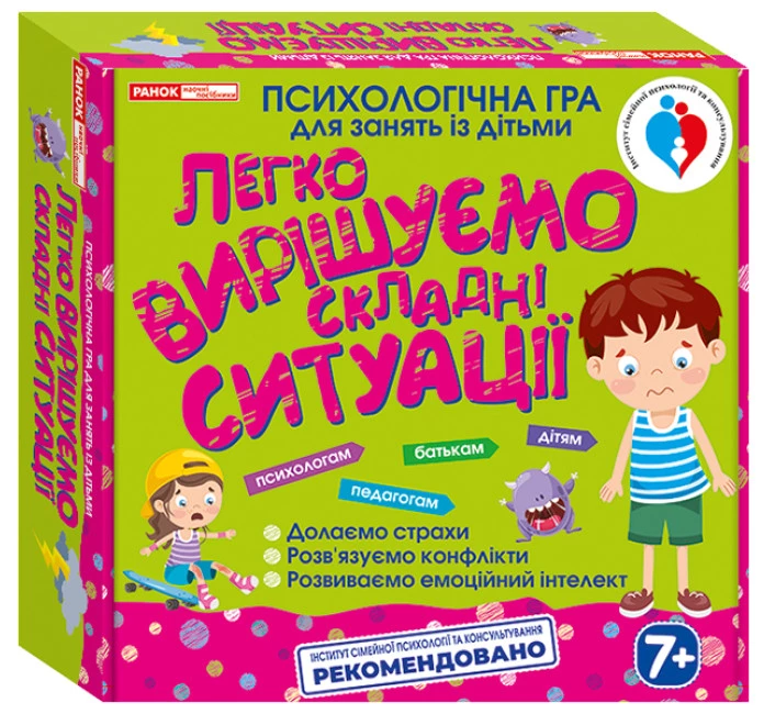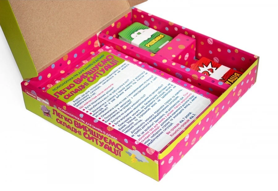 Чи доводилося вам спостерігати, як дитина, потрапляючи в незвичайну ситуацію, лякається того, що відбувається, і не може знайти вихід із неї? Дана настільна гра — чудовий помічник батьків, педагогів, психологів та дітей. Завдяки цій грі діти навчаться: