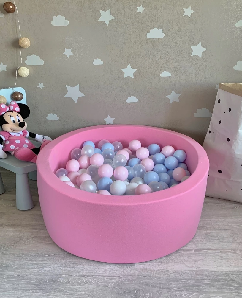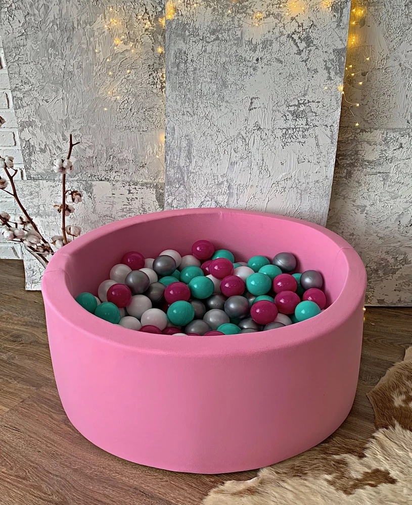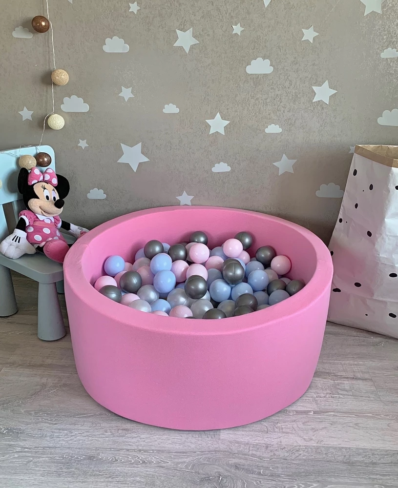 Діти обожнюють сухі басейни, в них можна розслабитися, подуріти, а також вивчити кольору. На дні басейну розташований синтепоновий утеплювач, чохол можна легко зняти і випрати в пральній машині при необхідності. Кульки здатні витримувати вагу до 150 кг, а каркас виготовлений з м'якого меблевого поролону.