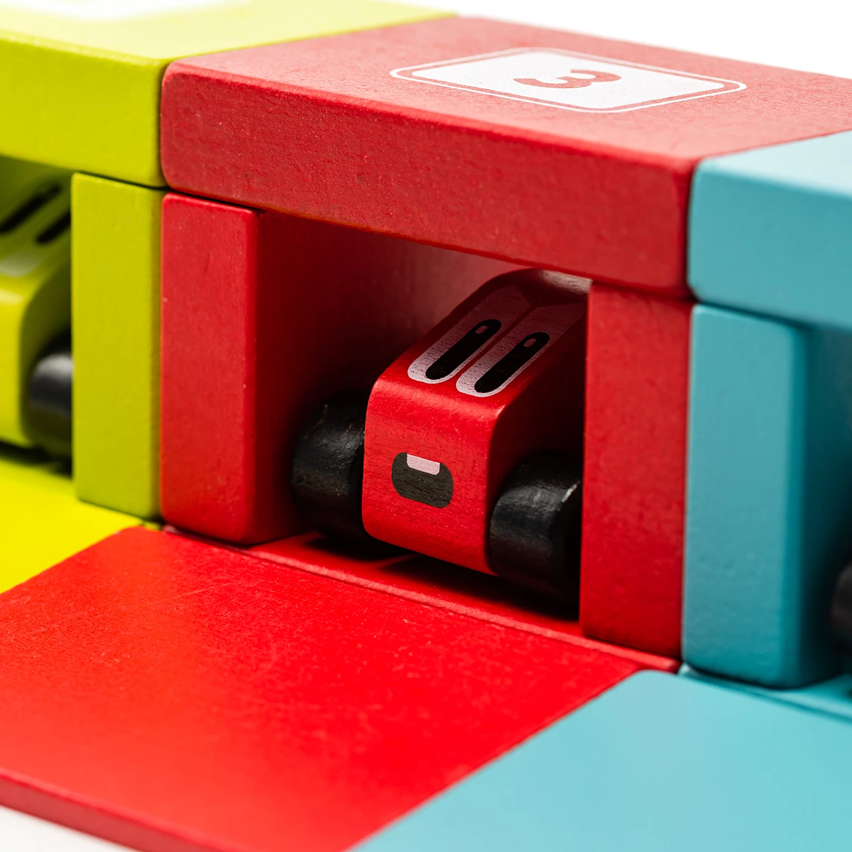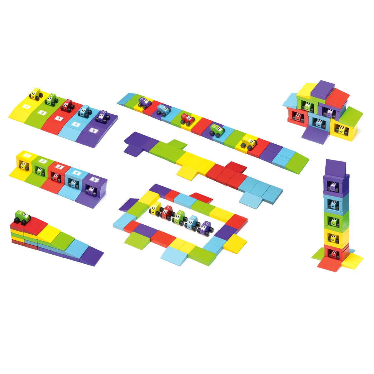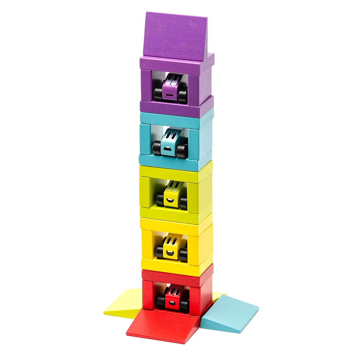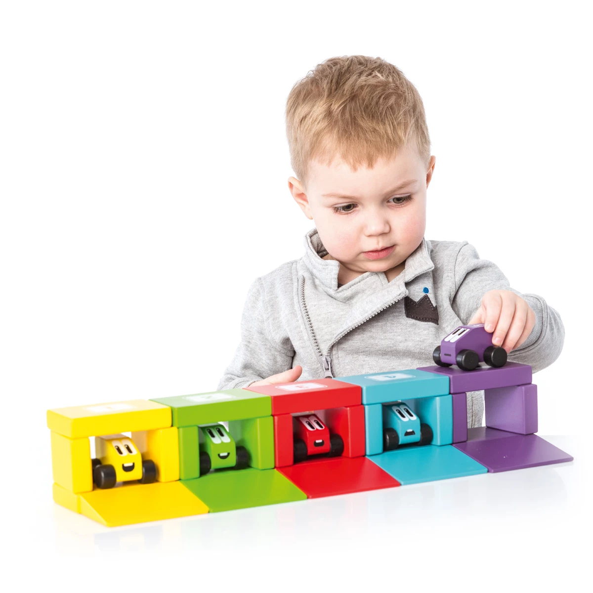 Розвивальна екологічна дерев'яна іграшка «Яскраві гонки» є різнокольоровим дерев'яним набором з машинками для захопливих рольових ігор. Кожна машинка має власний номер, також у наборі є гаражі з відповідними номерами. Ця іграшка допомагає дитині вивчати різні кольори, емоції, фігури та форми. Під час гри дитина зможе навчитися рахувати та розширити свій словниковий запас. Набір розвиває моторику, координацію рухів та інші важливі навички.