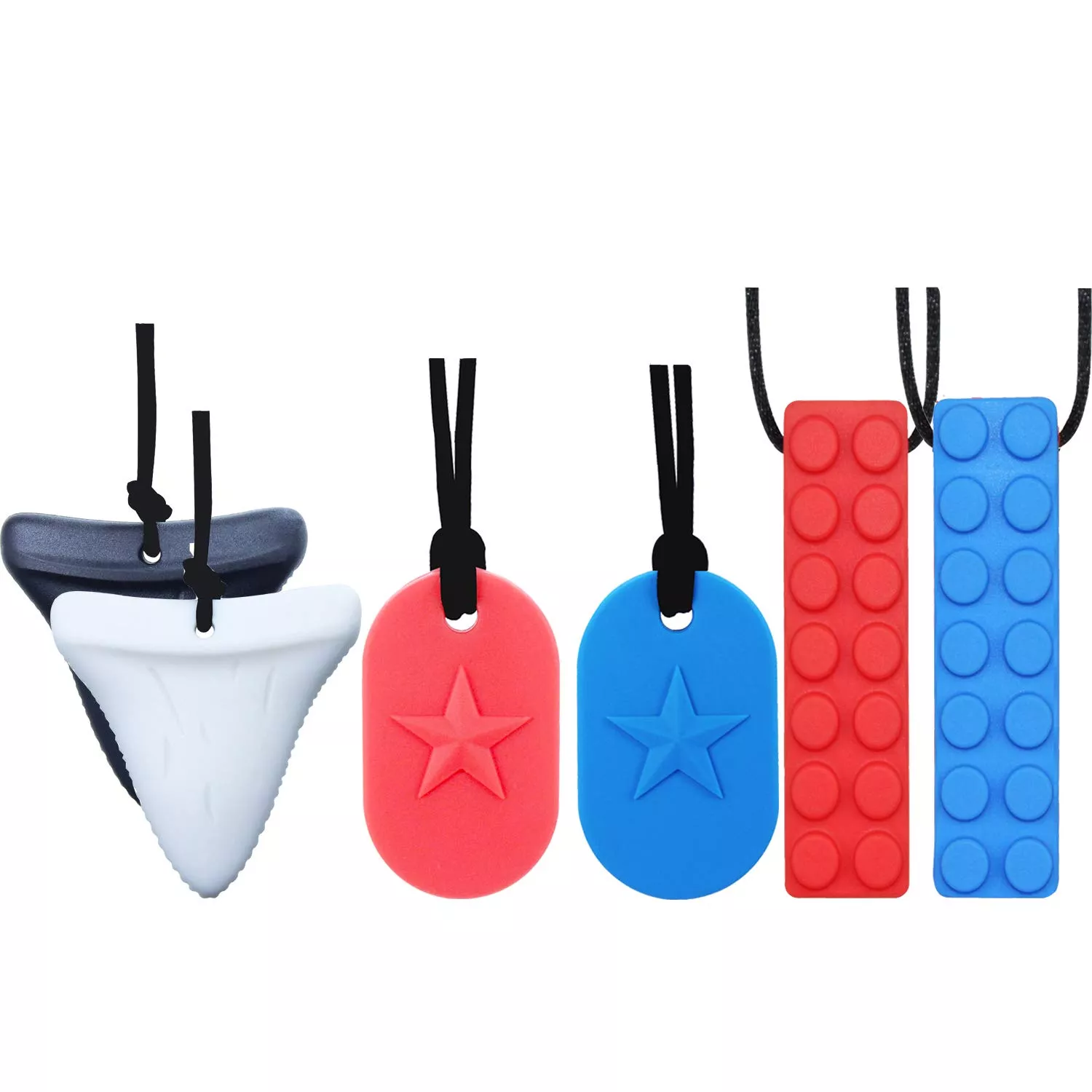 Chew Necklace від GNAWRISHING - упаковка з 6 шт. (Dog Tag, Shark and Building Block)
