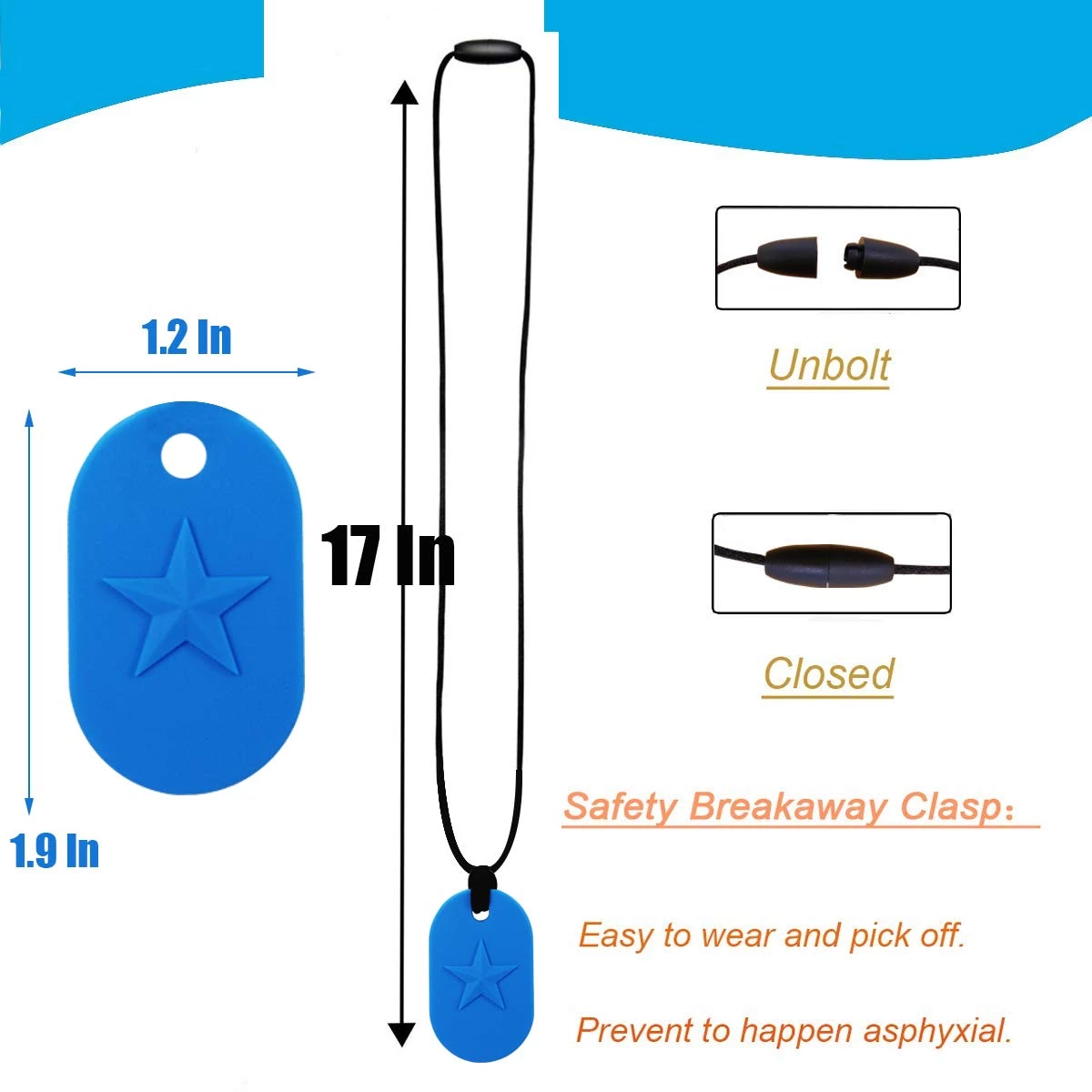 Колір шнура відповідає кольору підвіски! Відривна застібка запобігає удушенні або нещасному випадку; тим не менш, будь-яка дитина, що носить намисто, повинна постійно перебувати під наглядом дорослих.