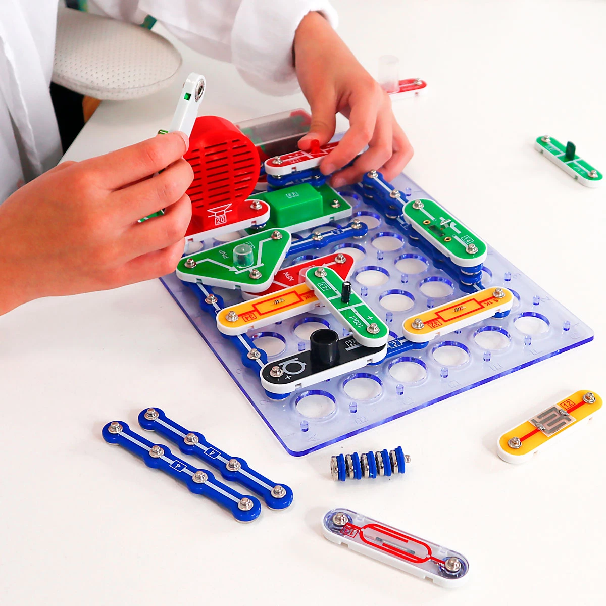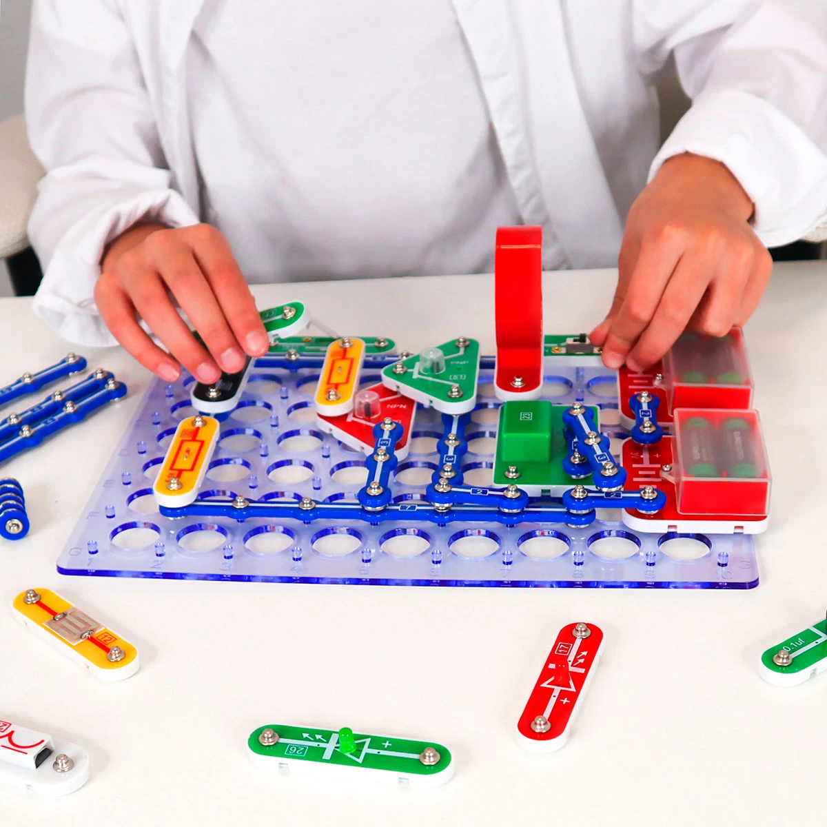 Цей електронний конструктор, що включає 320 схем, - відмінний подарунок для юних експериментаторів! З його допомогою можна зібрати безліч пристроїв, серед яких приймач, музичний дзвінок, синтезатор звуків, сигналізація тощо. Набір в ігровій формі знайомить дитину з основами електроніки, пробуджує інтерес до науки та створення електронних пристроїв. Деталі з'єднуються без використання паяльника, що дозволить досягти швидкого та ефективного результату.Набір укомплектований інструкцією, в якій міститься 136 ілюстрацій та 320 схем.