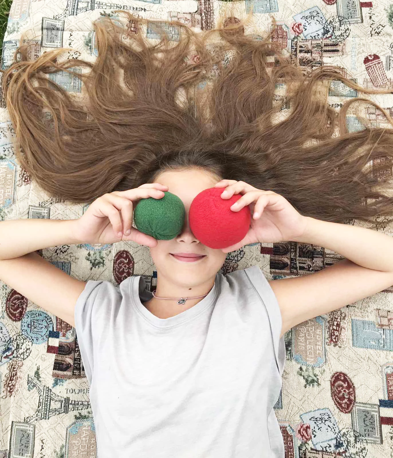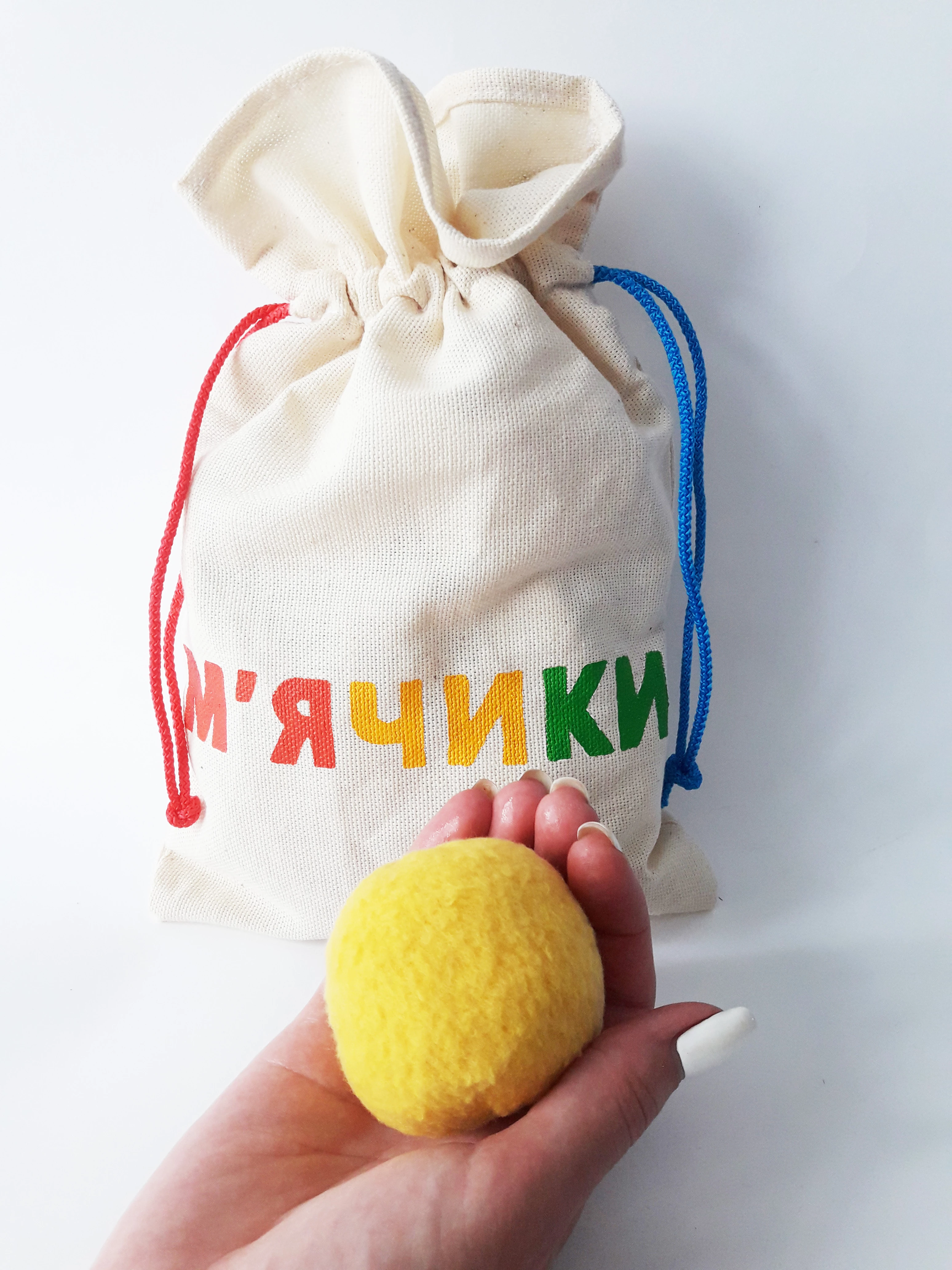 М'ячики поставляються у зручному полотняному мішечку з мотузками-затяжками, що гарантує зручне зберігання виробів.