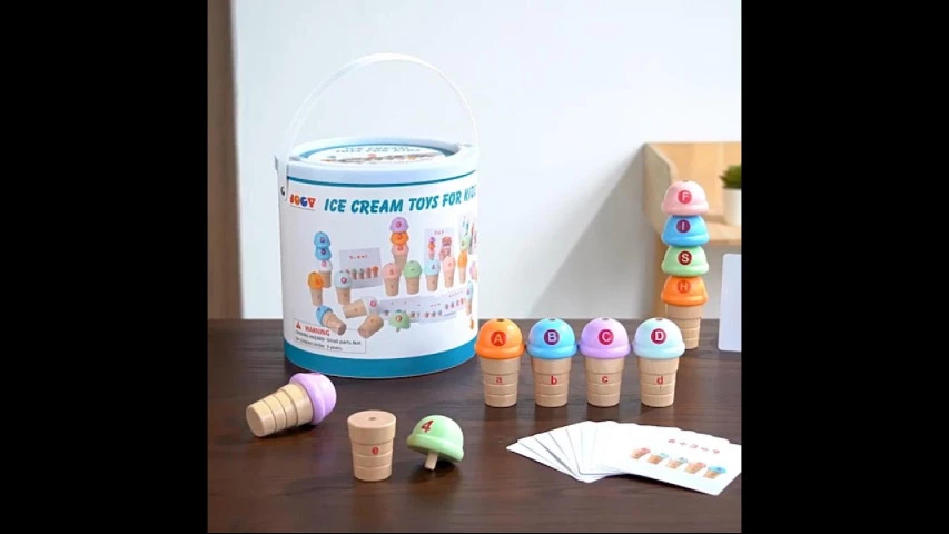 Видео Развивающий набор сортер Ведерко с мороженым от Obetty