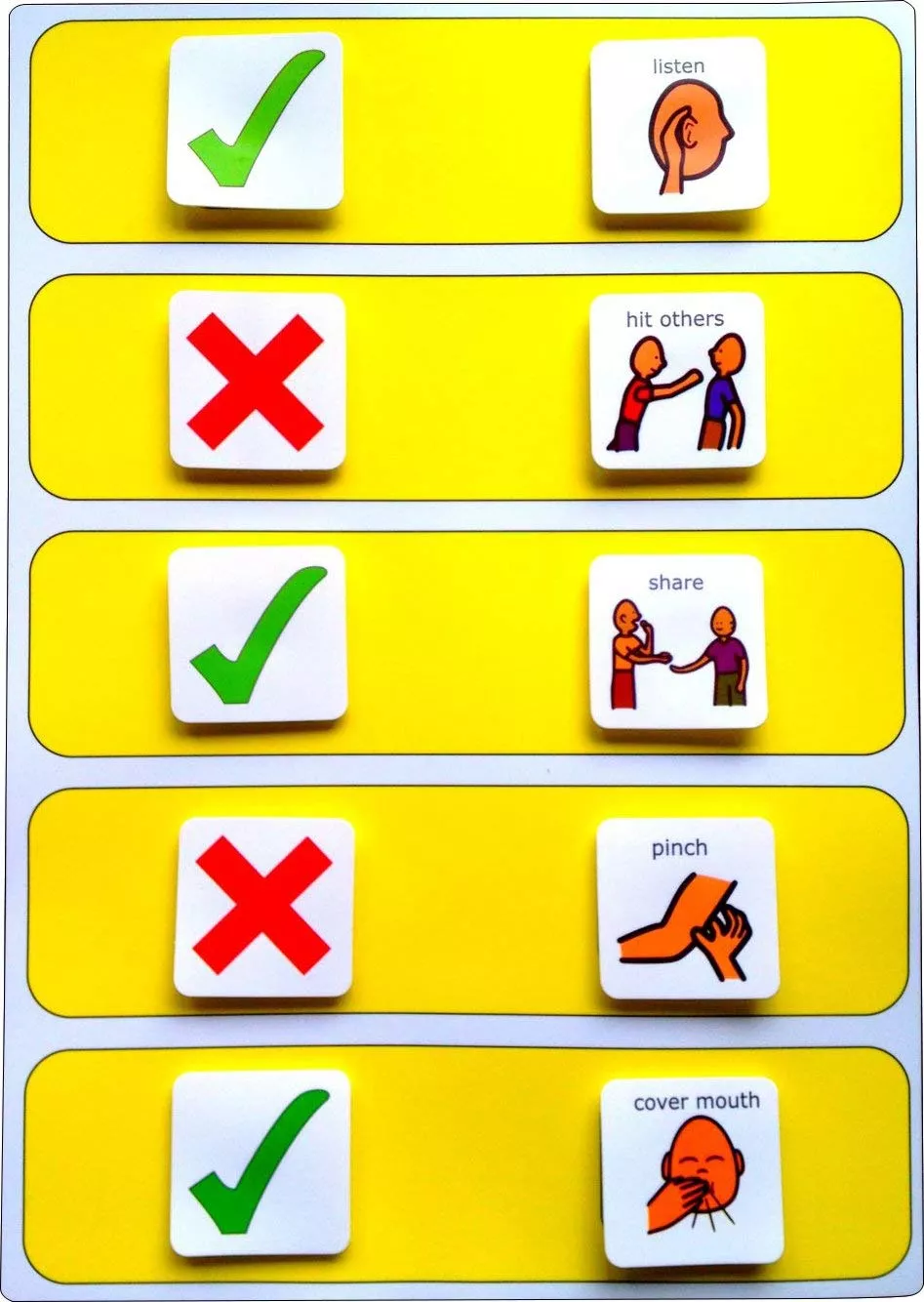 Это пластиковая доска поможет детям выучить правила поведения и общения с окружающими. Он поставляется с 17 различными картинками поведения для использования на доске. Карточки представляют собой квадраты размером 4,5х4,5 см, благодаря чему их легко увидеть, но при этом они удобны для хранения и использования. Все углы карточек скруглены, дети не поцарапаются во время игры.
