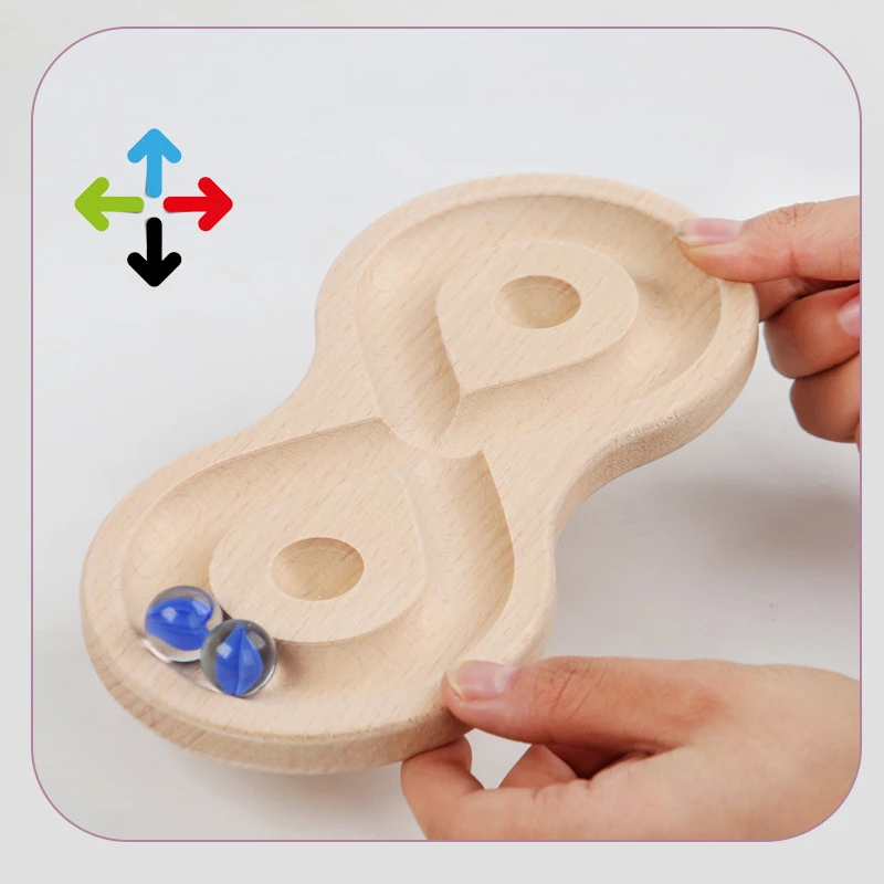 Кто из нас не любит иногда поломать мозги и пособирать головоломки? Именно к таким занятиям и следует приучать детей уже с 4 лет, а начать можно с «Восьмёрки»! Да, так называется лабиринт-тренажёр, в котором, меняя конфигурацию трассы, необходимо удержать два входящих в комплект шарика! При этом, сама игрушка выполнена из бука , поэтому ребёнку будет удобно и легко держать её! Подобные занятия отлично развивают зрительно-моторную координацию, внимание и логику!