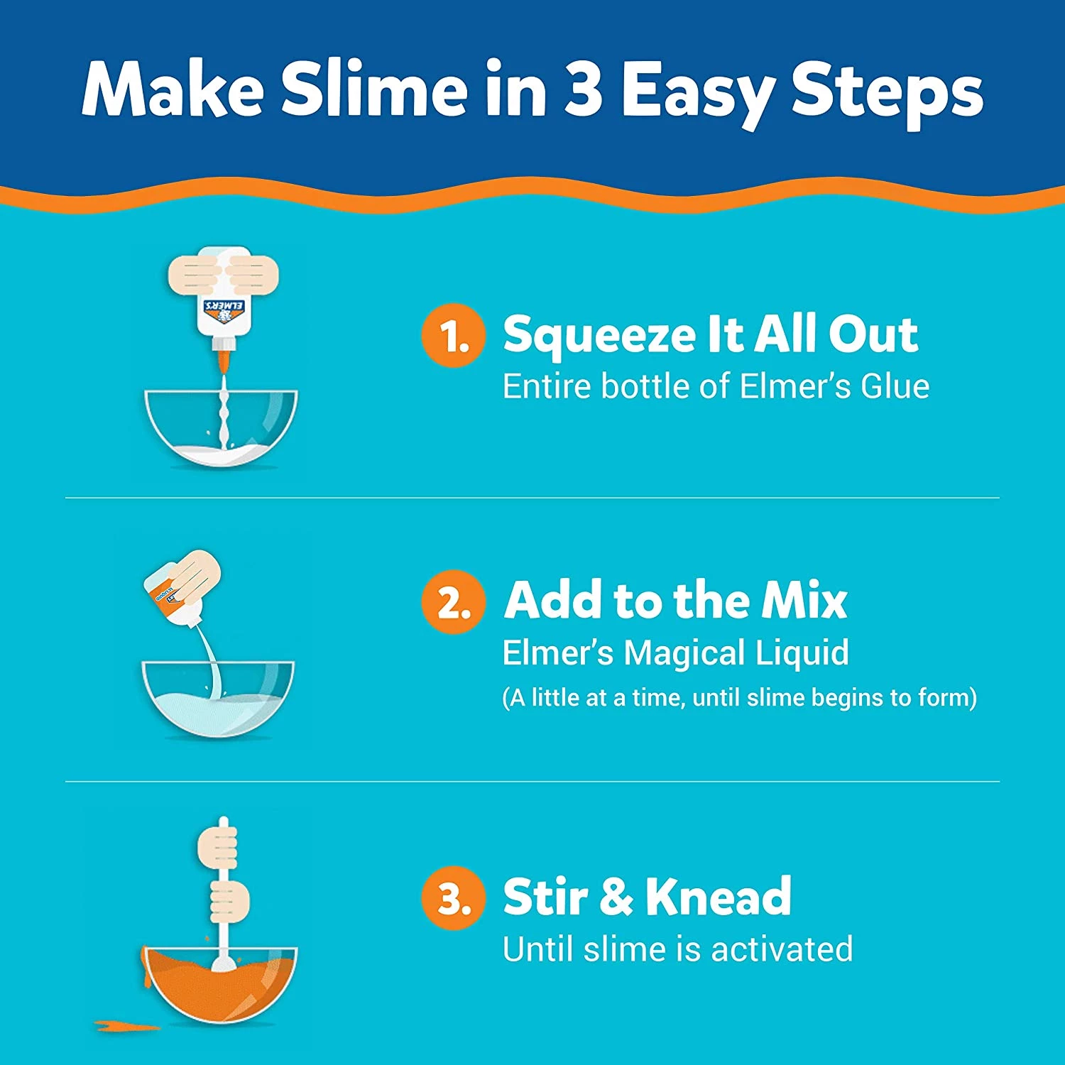 При смешивании с магической жидкостью Элмера вы можете превратить клей Элмера в слаймы. Благодаря универсальной формуле, которую можно мыть, набор безопасен и нетоксичен.