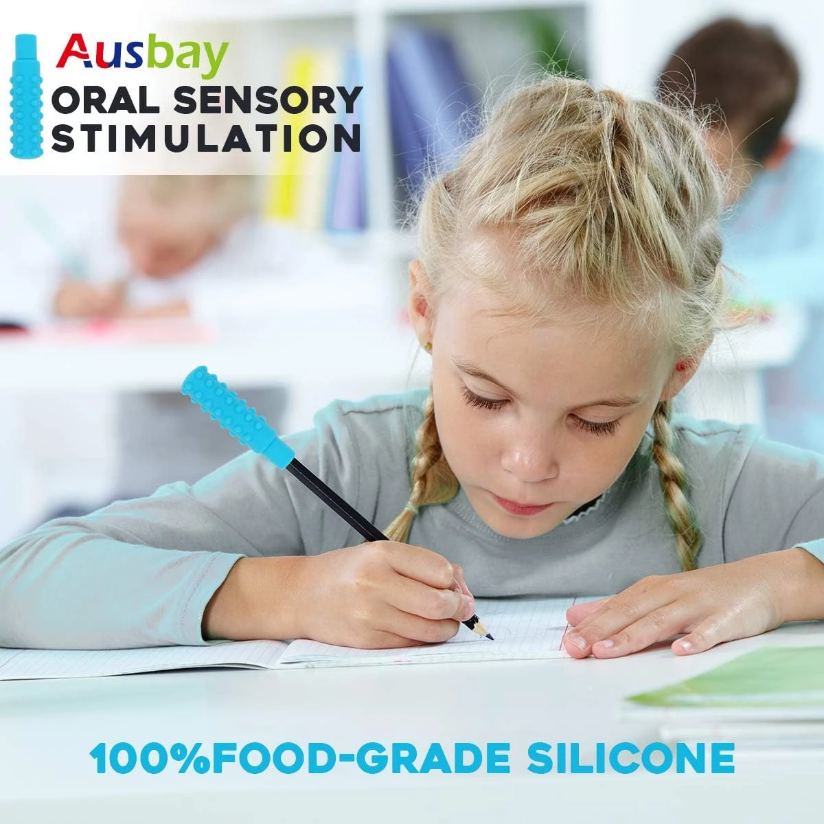 Жевательная насадка для ручки и карандаша выполнена из пищевого нетоксичного силикона, не имеющего запаха и вкуса и не содержащего BPA, ПВХ, фталатов, кадмия. Сенсорная жевательная насадка с большими круглыми бугорками успокаивает детей с аутизмом и СДВГ. Больше не нужно грызть карандаш, жевать одежду или сосать палец. Изделие снижает риск возникновения стоматологических проблем.