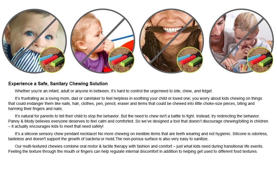 Сенсорное жевательное ожерелье имеет крошечные выпуклые выступы и похоже на детальку лего. Она не царапают десна ребенка, выполняя массаж десен, облегчают прорезывания зубов, снятие стресса и беспокойства.
