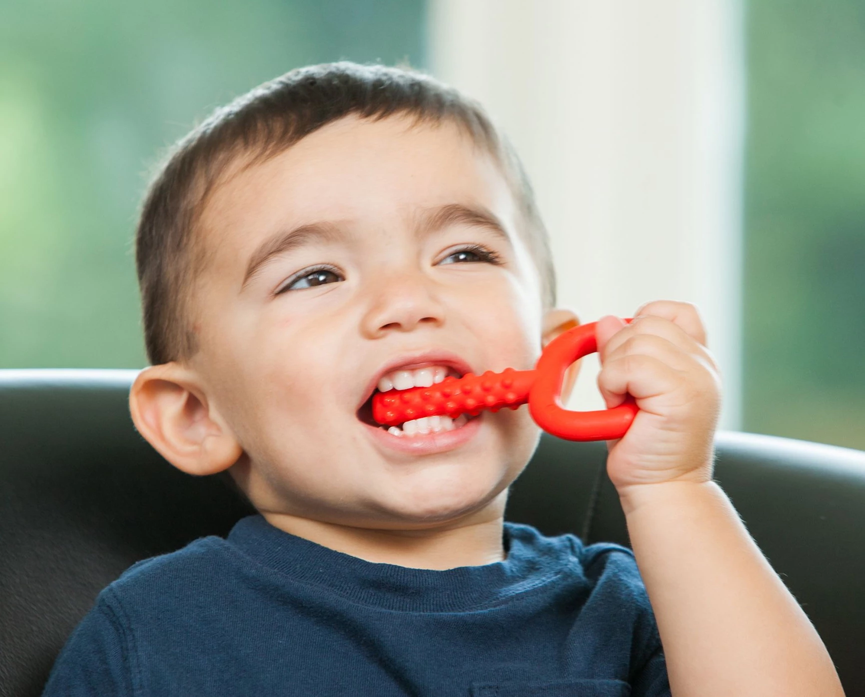 Прорезыватель для зубов имеет рифленую поверхность, которая оказывает массирующие действие на десна. Такое изделие эффективно развивает моторику рта, речевой аппарат и мускулатуру лица. Оно очень эластично и абсолютно безопасно для использования. Идеально подходит для детей с проблемами сенсорной интеграции. Грызунок должен использоваться индивидуально только одним ребенком. Конструкция полностью цельная, не имеет съемных деталей. Благодаря большой ручке ребенок без труда сможет вертеть и засовывать в рот прорезыватель.