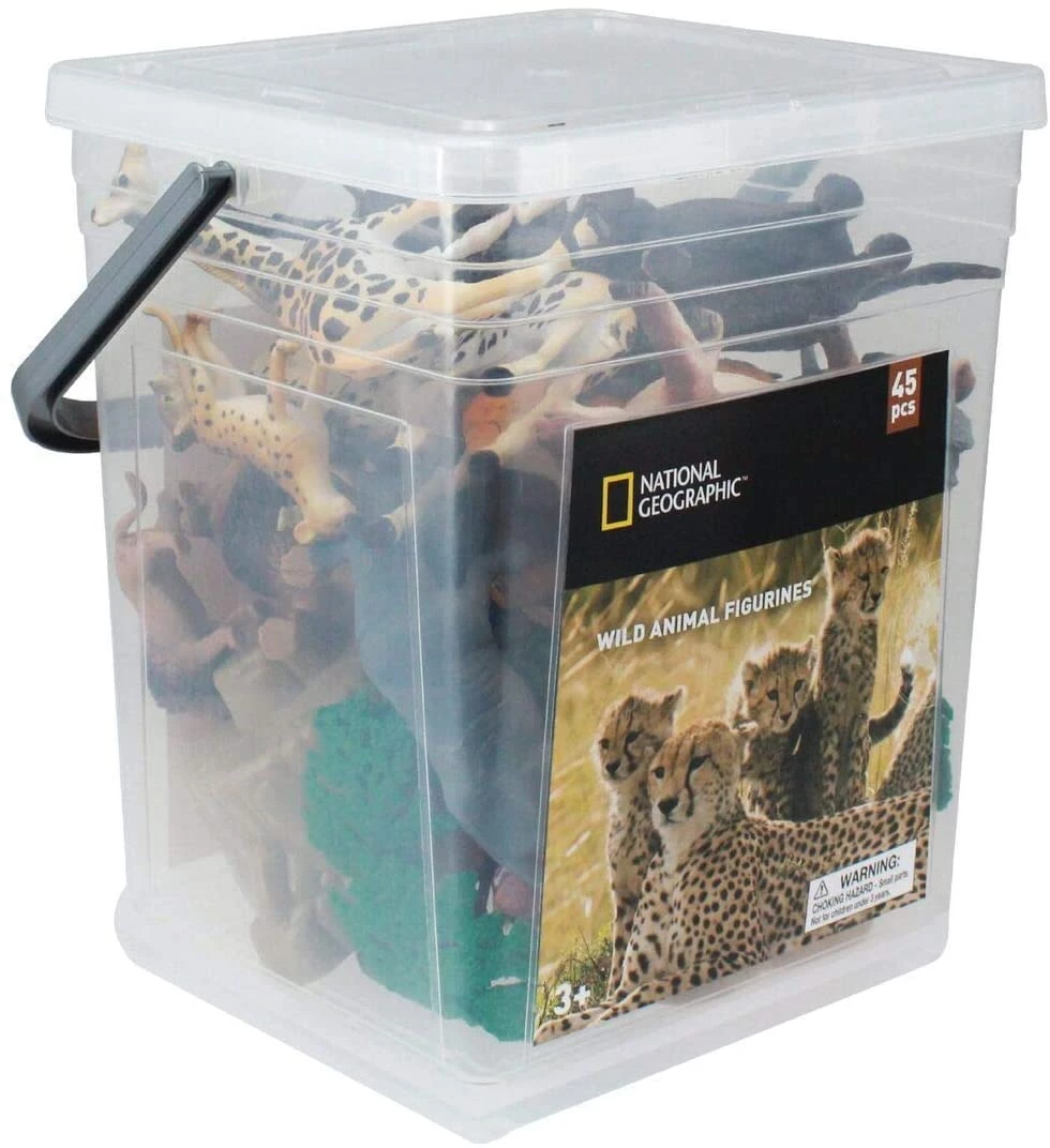 Wenno USA National Geographic Large Bucket of Safari Animals Figurines, 45 Pieces