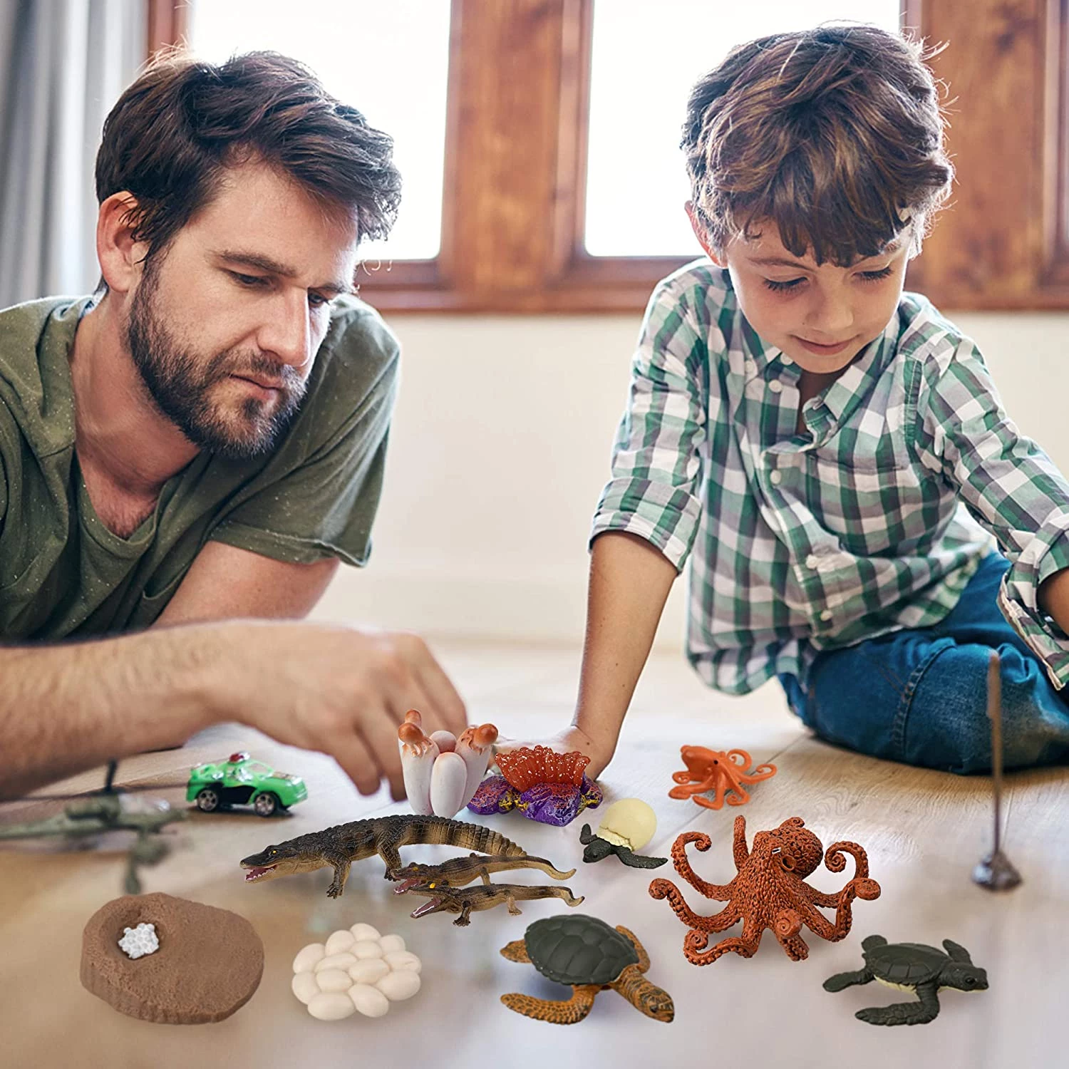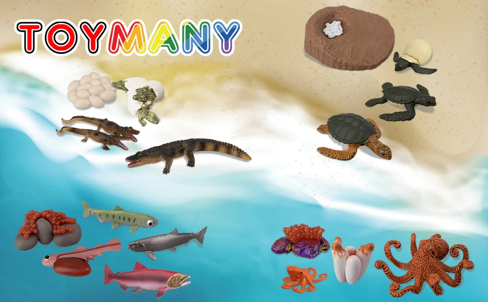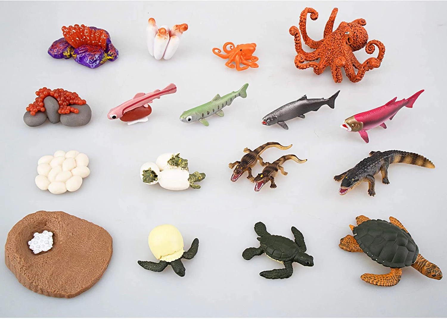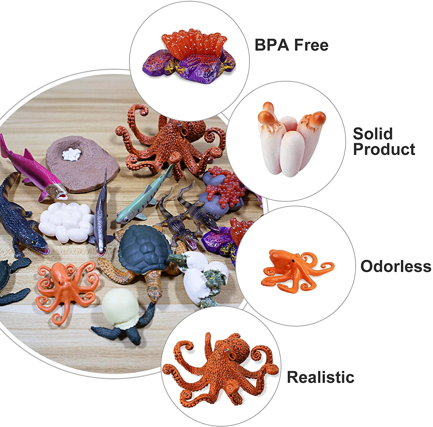 TOYMANY 17PCS Sea Animal Life Cycle Figurines